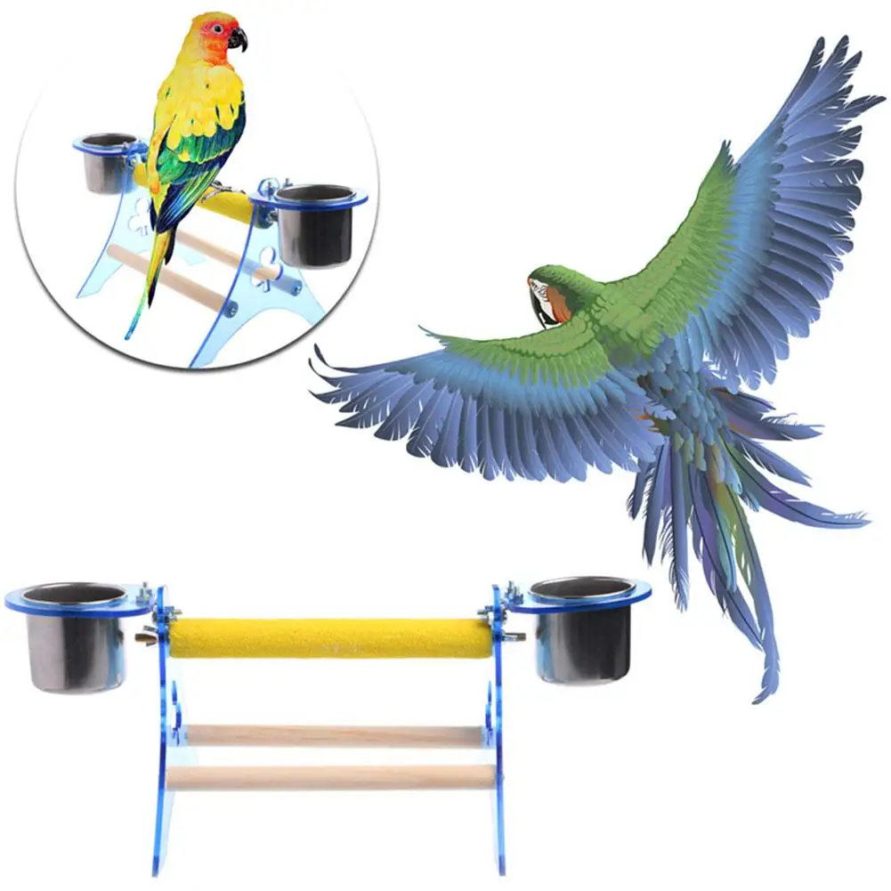 Adeeing Wooden Tripod Model Home Parrot Pet Bird Perch Cup Stand Platform Toys