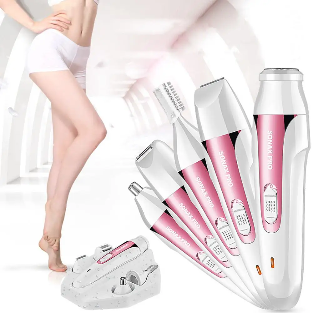 Adoolla 5in1 Electric Epilator Women Facial Leg Eyebrow Rechargeable Remover Hair Bikini Trimmer Set Lady Shaver