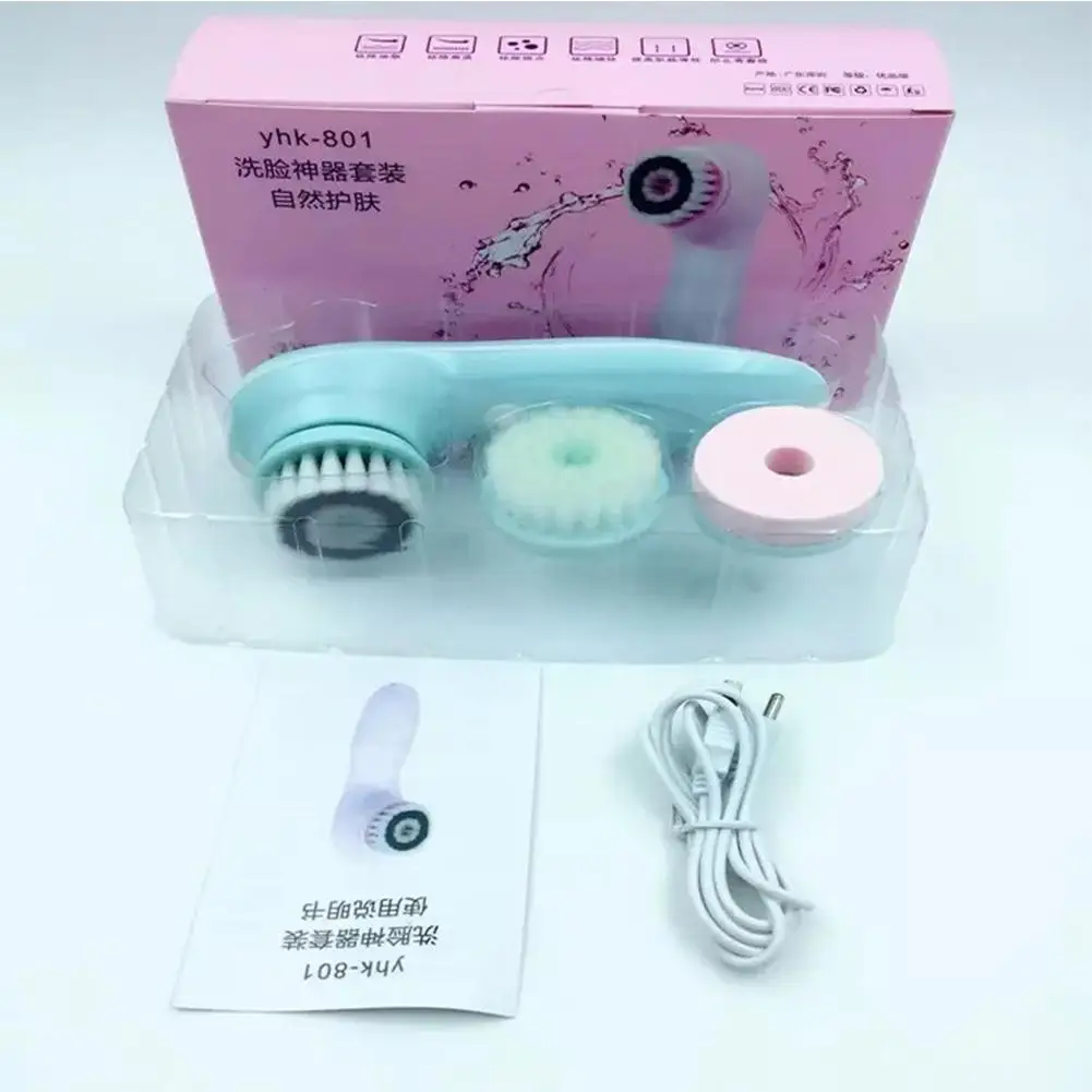 Adoolla Facial Cleansing Brush USB Rechargeable Electric Wash Brush 3 in 1 Rotation Blackhead Acne Remover Soft Massager Brushes