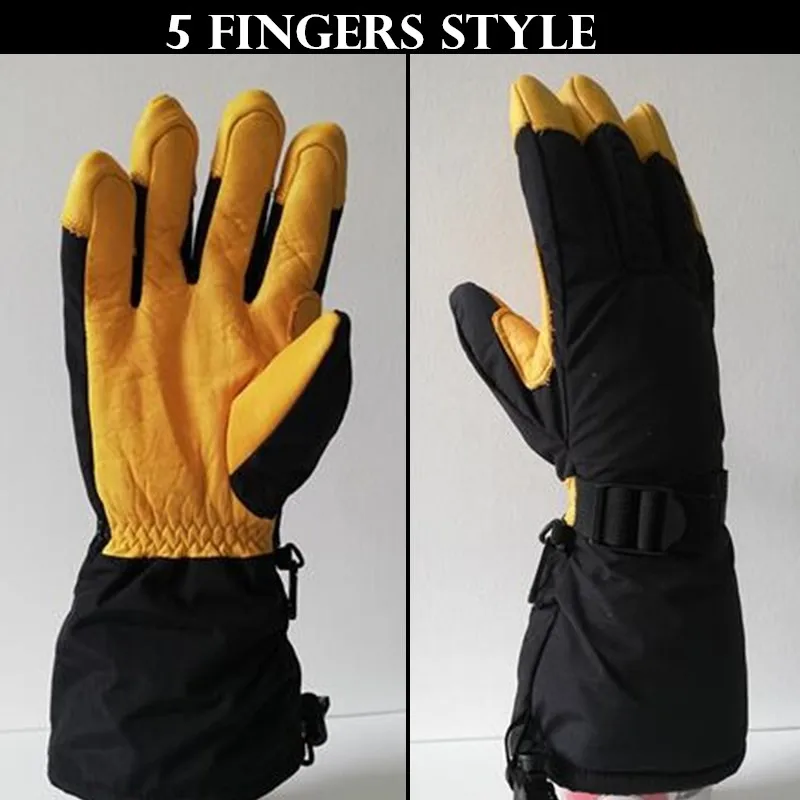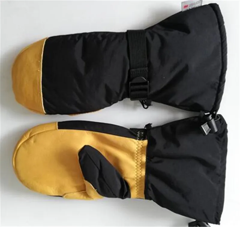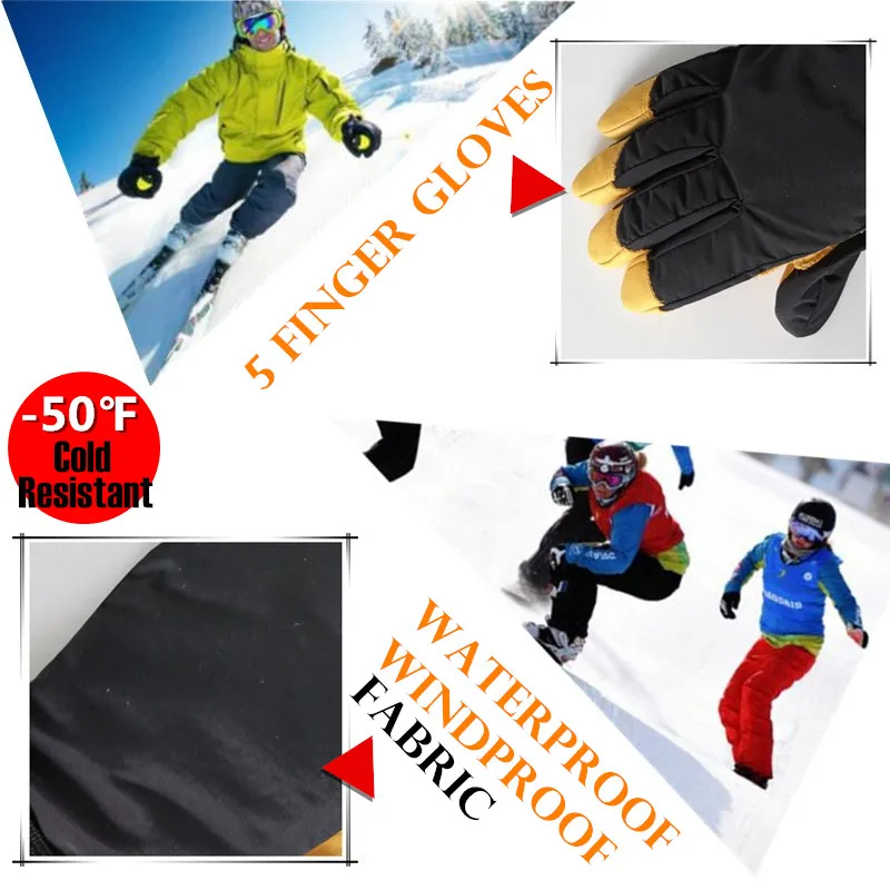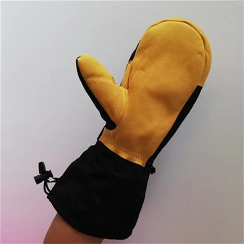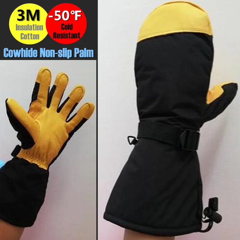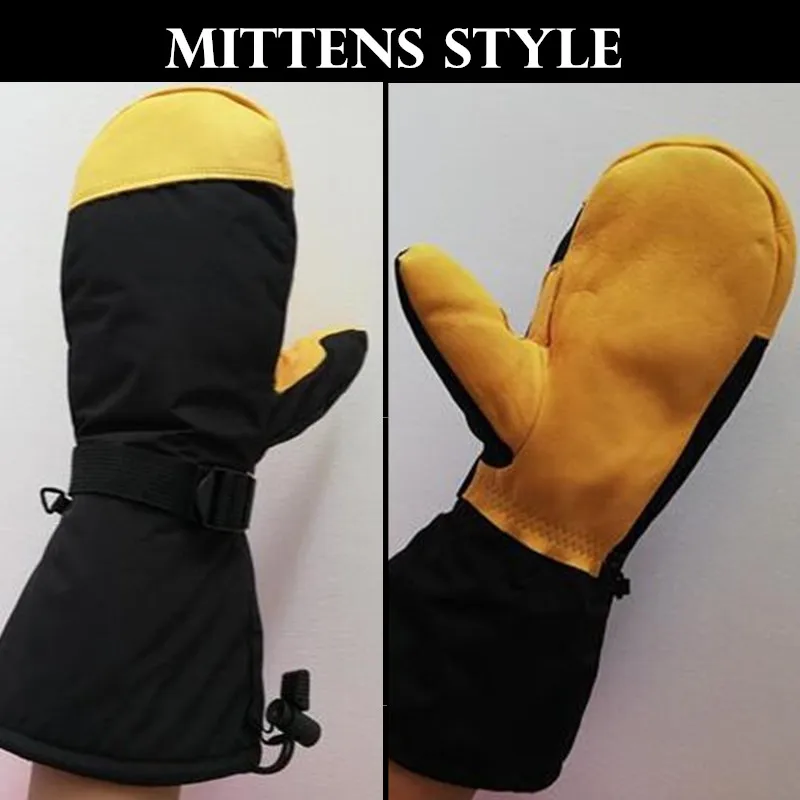 Adult Ski Gloves,Winter Thickened Fleece Warm Men&Women Windproof Gloves Cowhide leather Non-slip Palm Waterproof Elbow Mittens