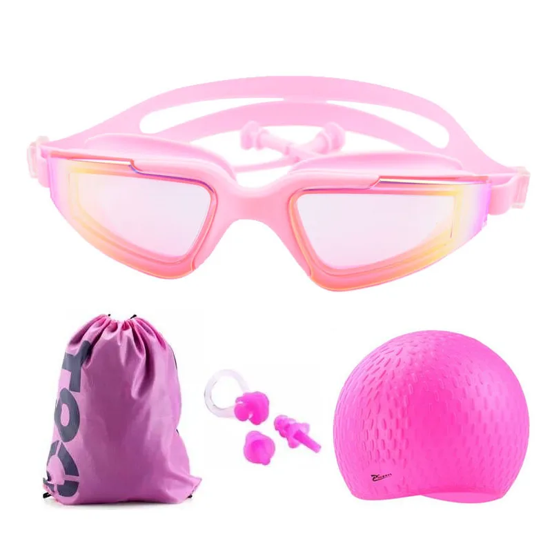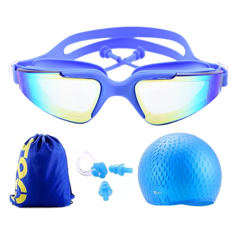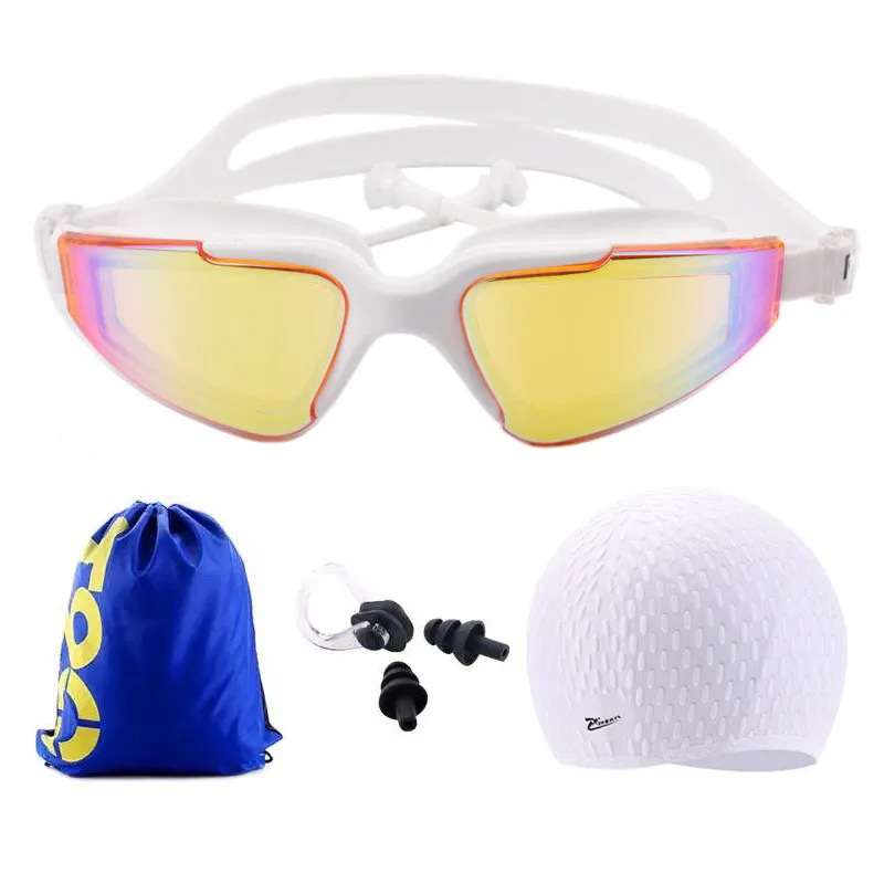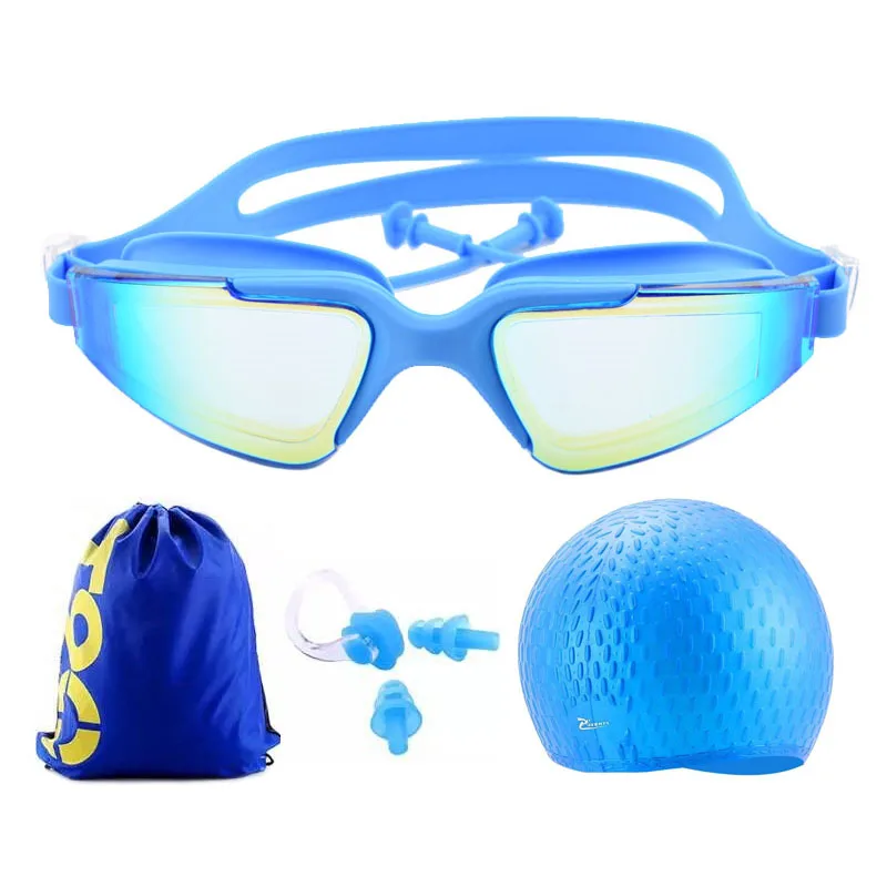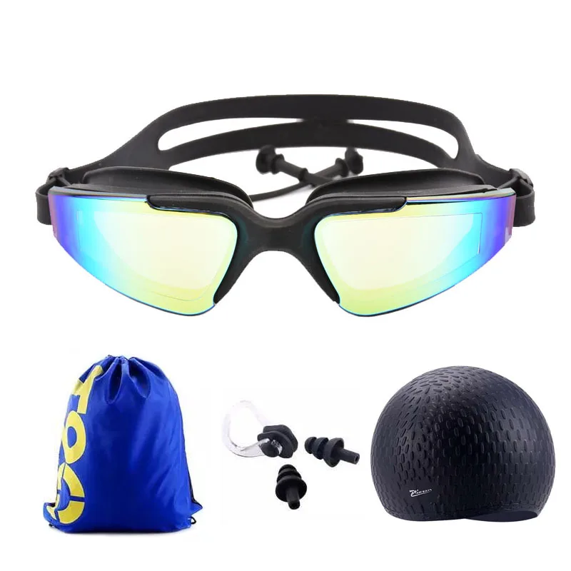 Adult Swimming glasses earplug set Waterproof Silicone Swim cap with Bag Anti-Fog Pool arena Water Swim Eyewear Diving goggles