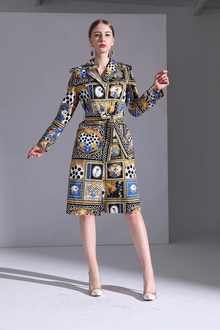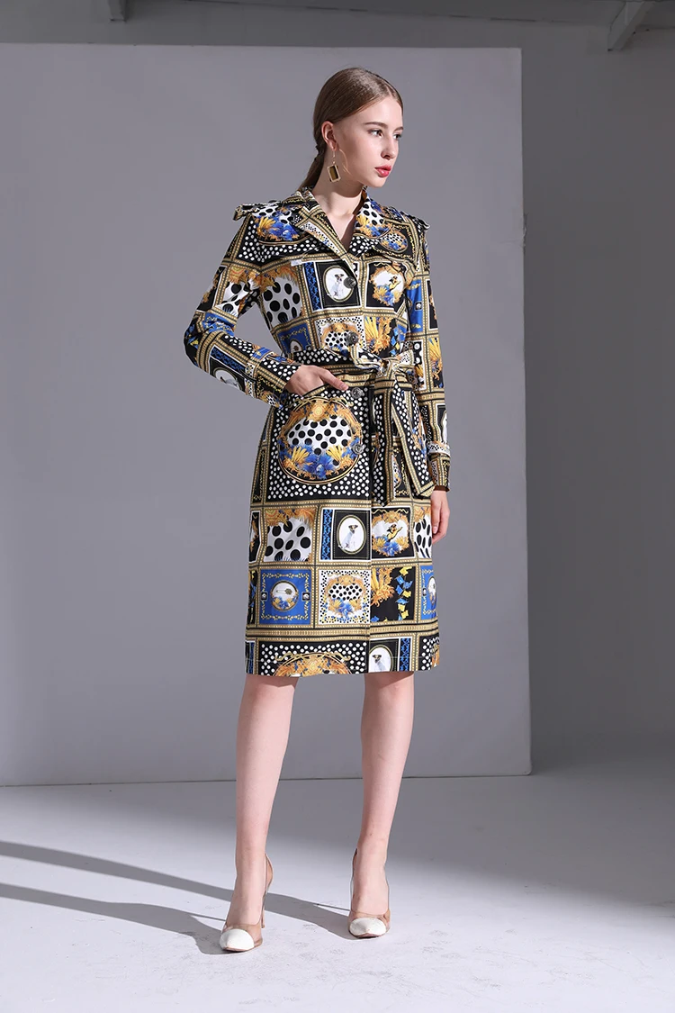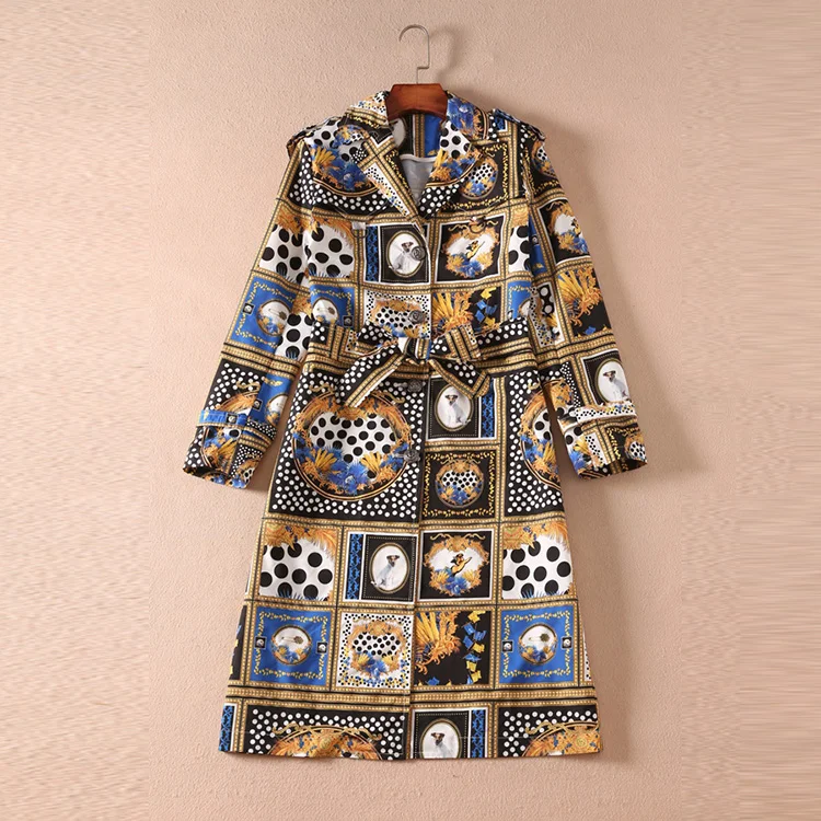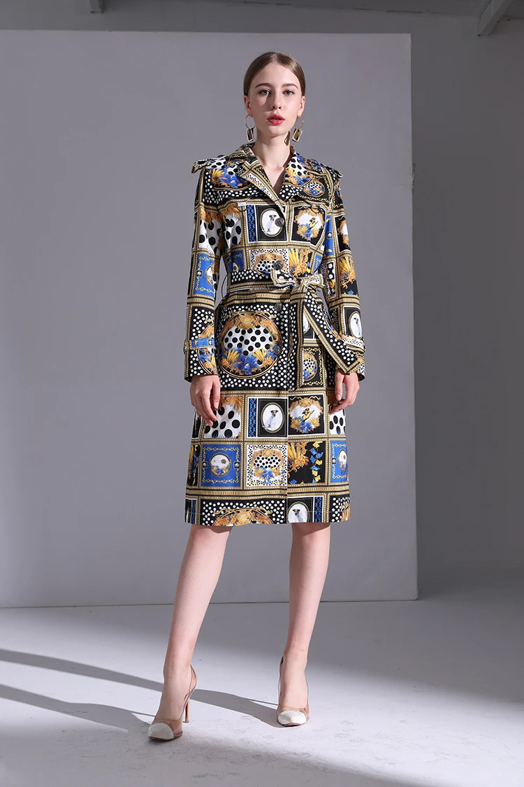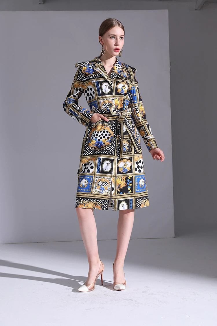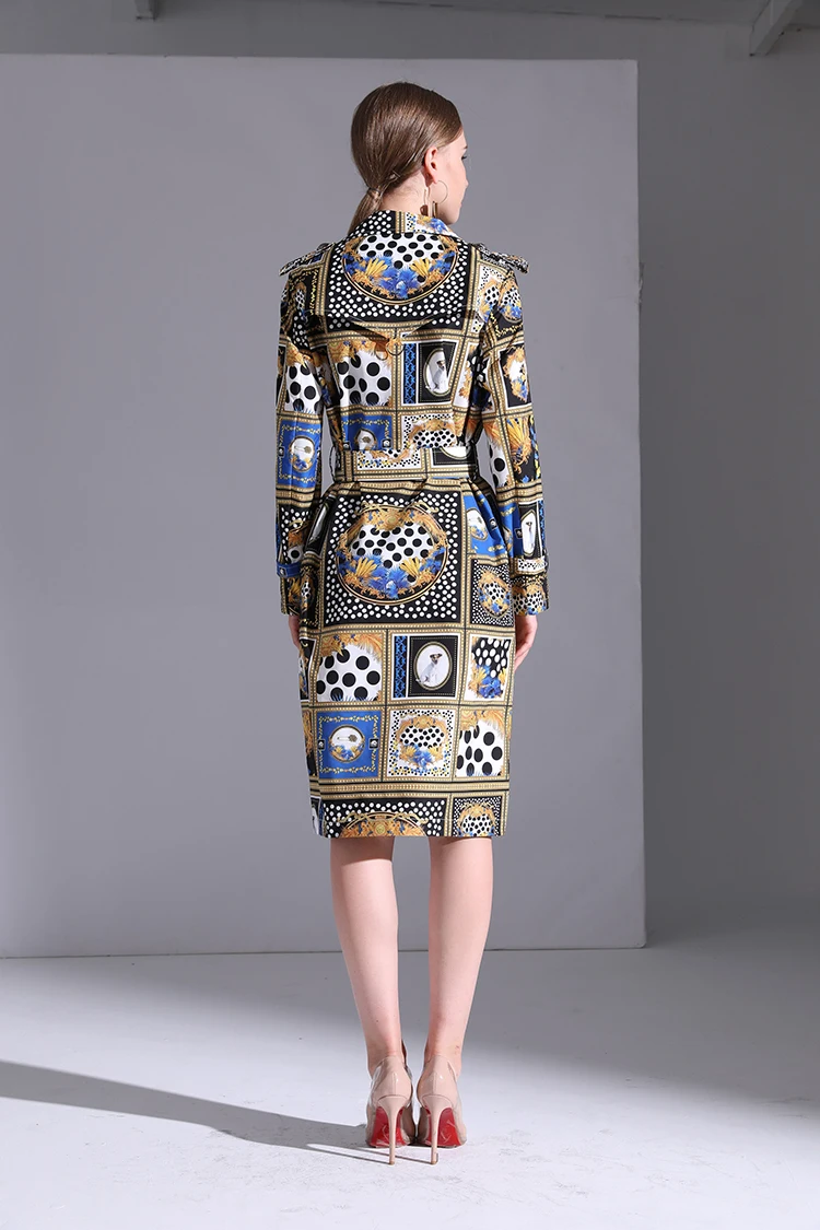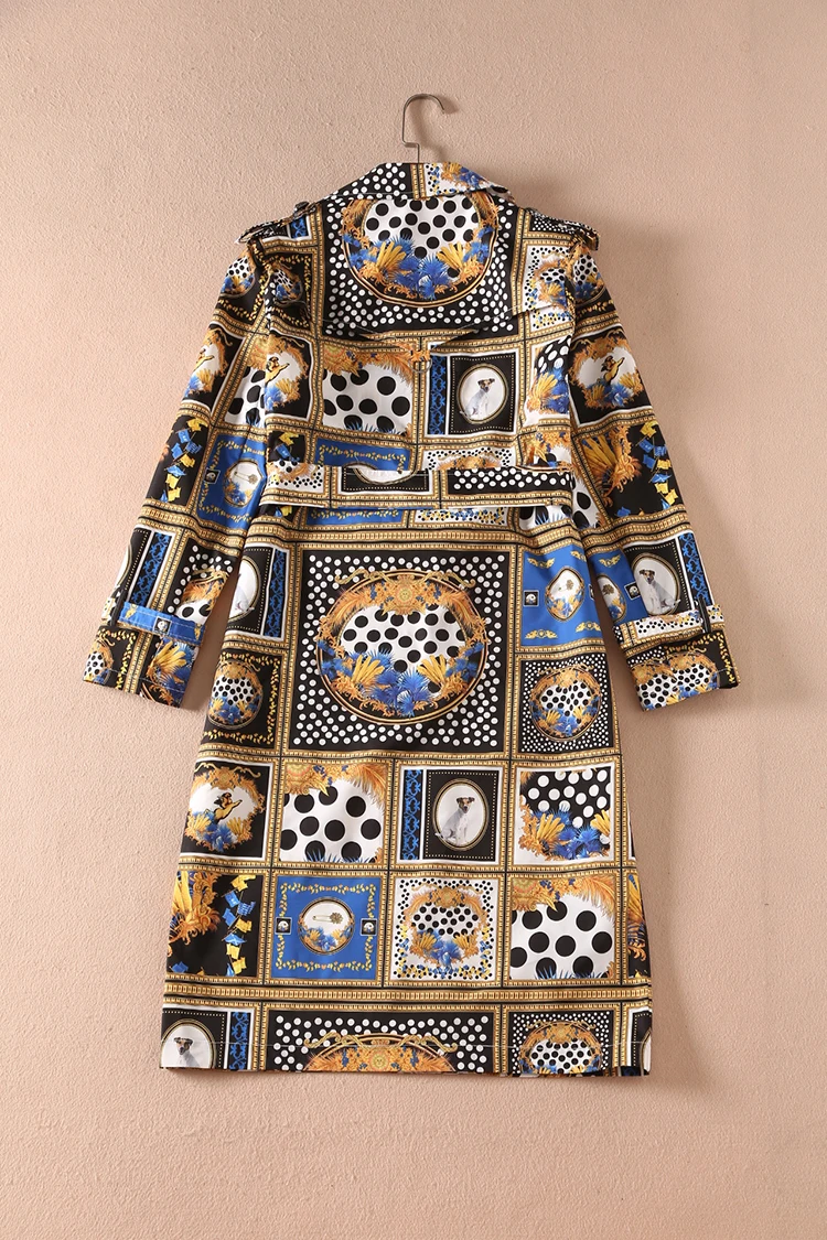 AELESEEN Designer Runway New Trench Coat 2018 Fashion Elegant Dog Print Dots long Sleeve Office Luxury UK Windbreaker Women
