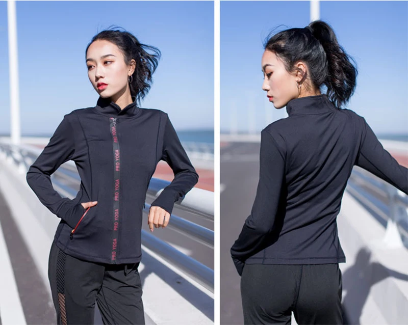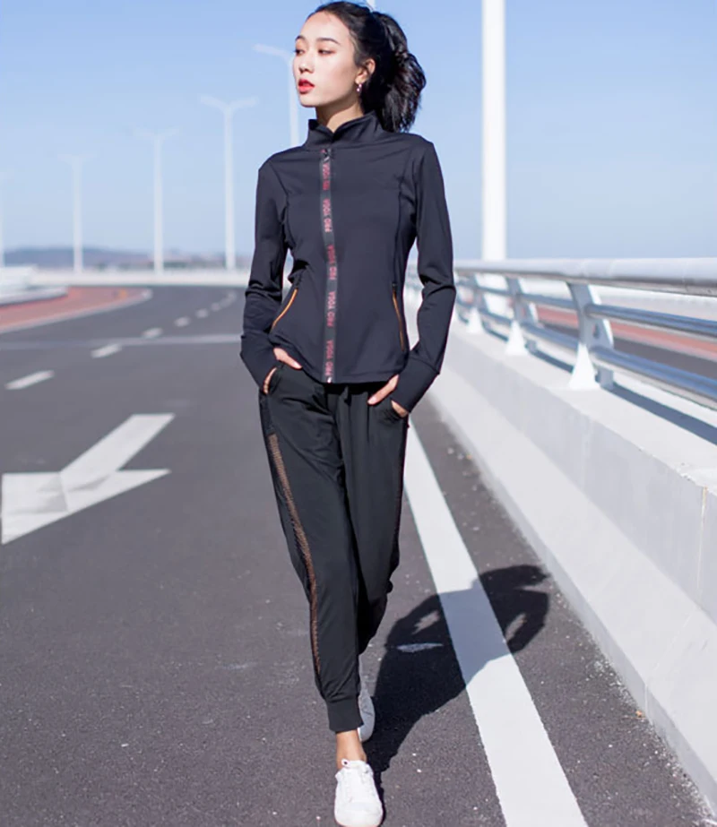 Aerfey 2018 New Women Autumn Spring Sports Sweatshirts Letters Zipper Running Jackets Tracksuits Gym Yoga Long Sleeves Coat
