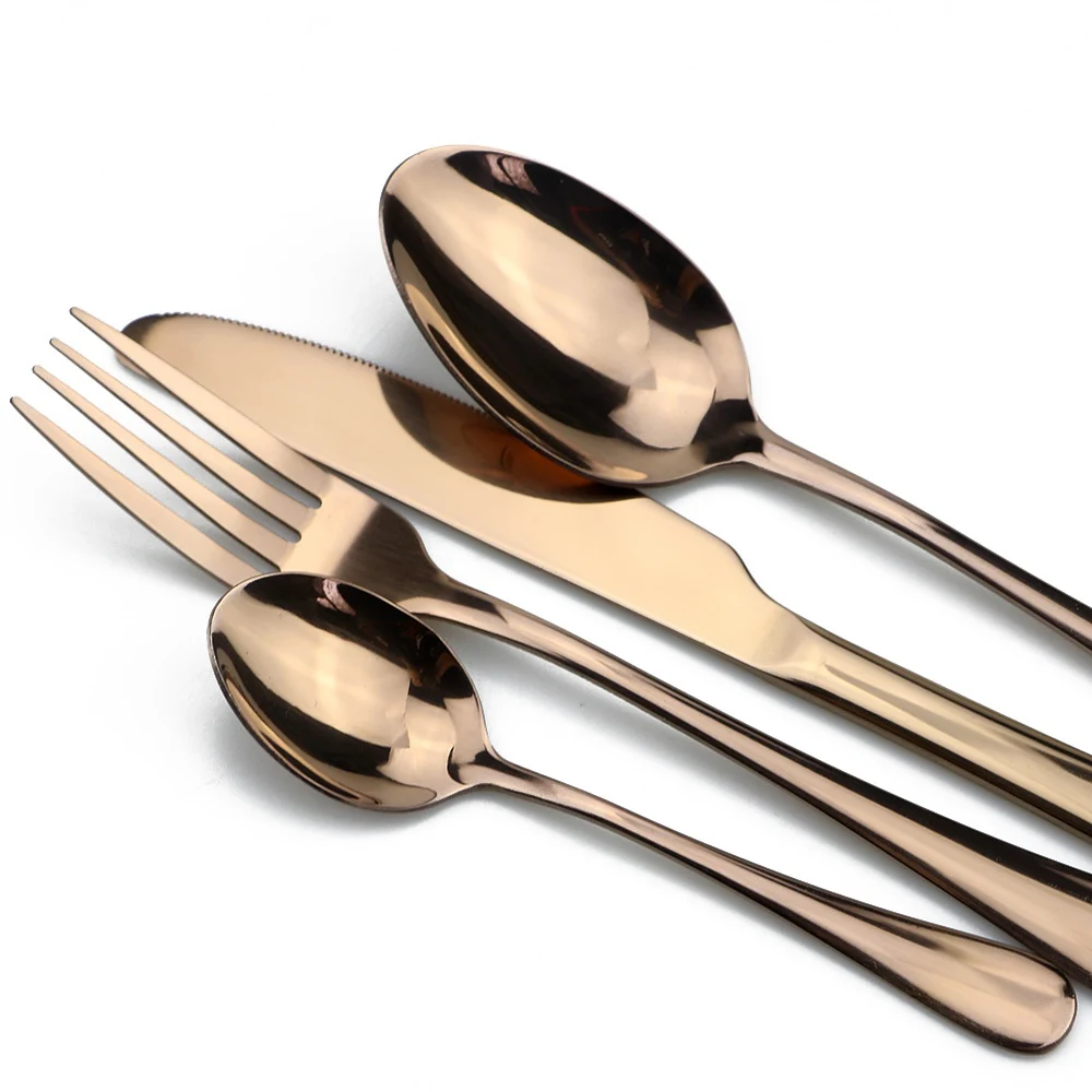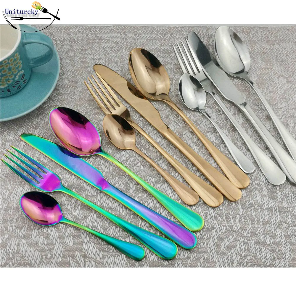 Affordable stainless steel Western Dinnerware Mirror Stainless Steel Black/Gold/Rose/Rainbow Knife Fork Teaspoon Silverware Set