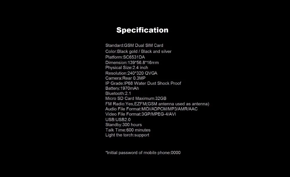 | Sales Point | IP68,1970mAh Battery, Metal protection |