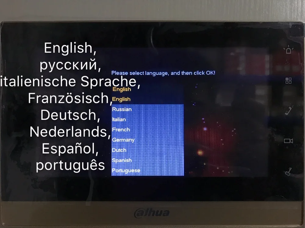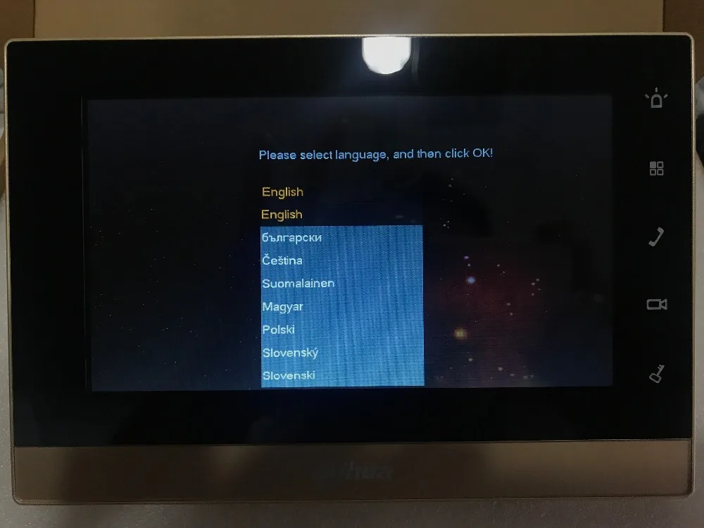 6. Tap the VTH on it’s first boot (or factory reset) and then enter the room number you had entered into the VTO1210C-X via Internet Explorer, then select OK, then select OK again, and then exit the window.