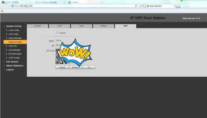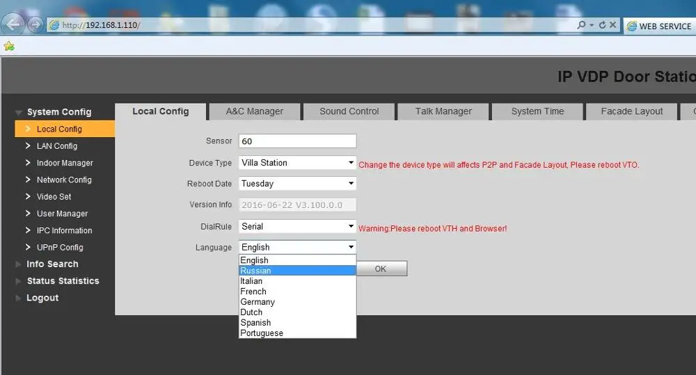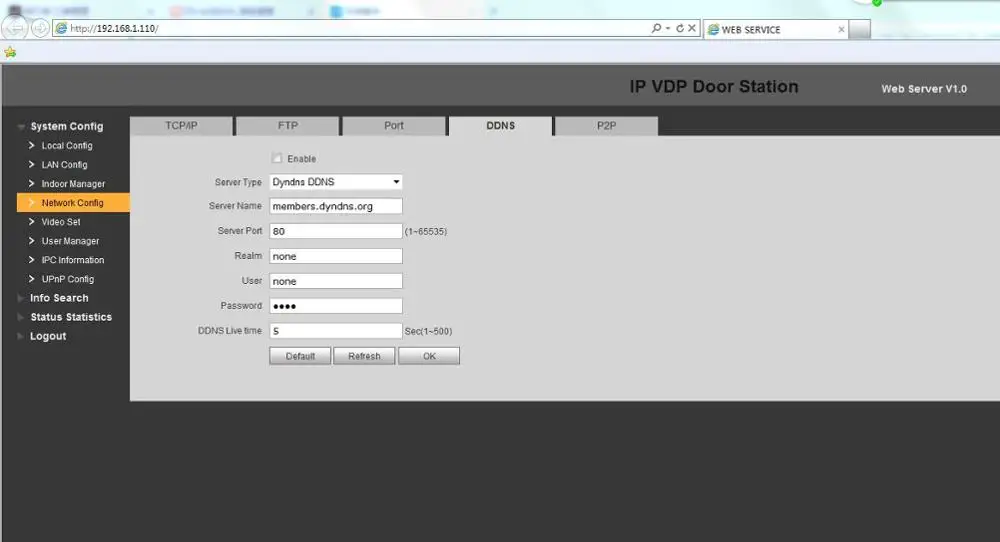 5.Now into the VTO(192.168.1.110), user name :admin, password : admin;Add indoor manager info;