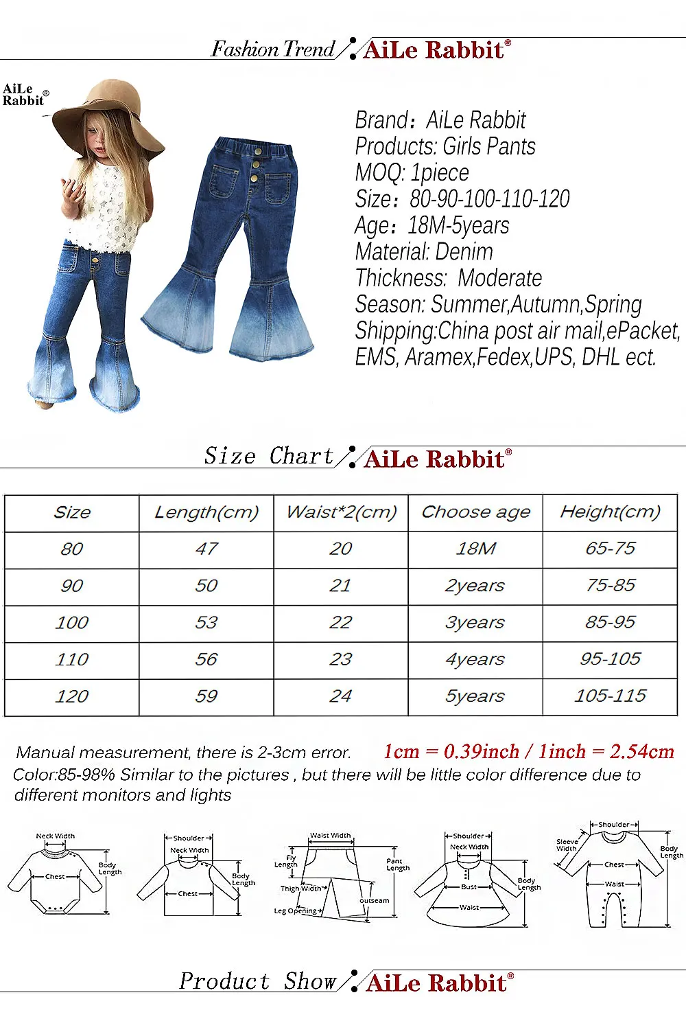 AiLe Rabbit 2018 Autumn INS Girls Jeans Popular Horns Denim Pants Fashion Wild Fall Essential Button Ghost Mermaid k1