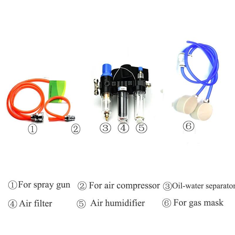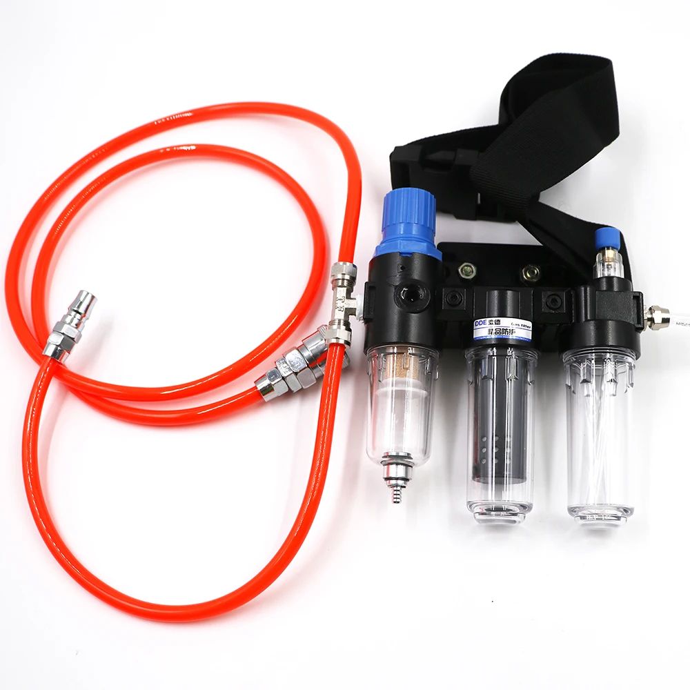 Three in one function:air humidifier, air filter and oil-water separator, so your air compressor don’t need an oil-water separator when you use your this set of air supply. The air is from the air compressor which is placed in pollution-free environment. So it avoids direct contact with poisonous gas, fundamentally solves the difficulty in breathing. Besides, you don’t need the cartridges and the filter cottons and you also don’t need to change them when they are out of work. Mask when using the internal formation of positive pressure, making the external toxic gases will not enter, mask to keep internal air circulation at the same time, solved the fuggy environment difficult to breathe and sweat! This set bring you safe and convenience.