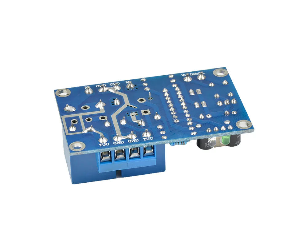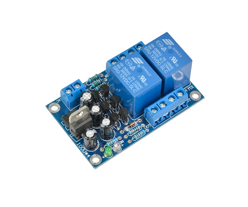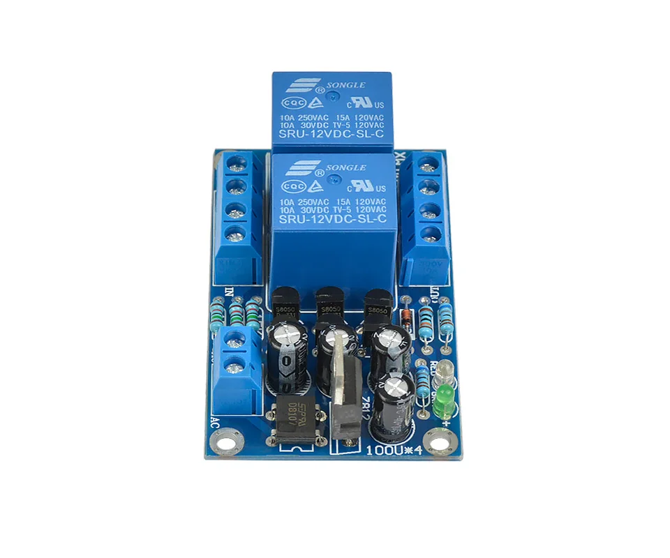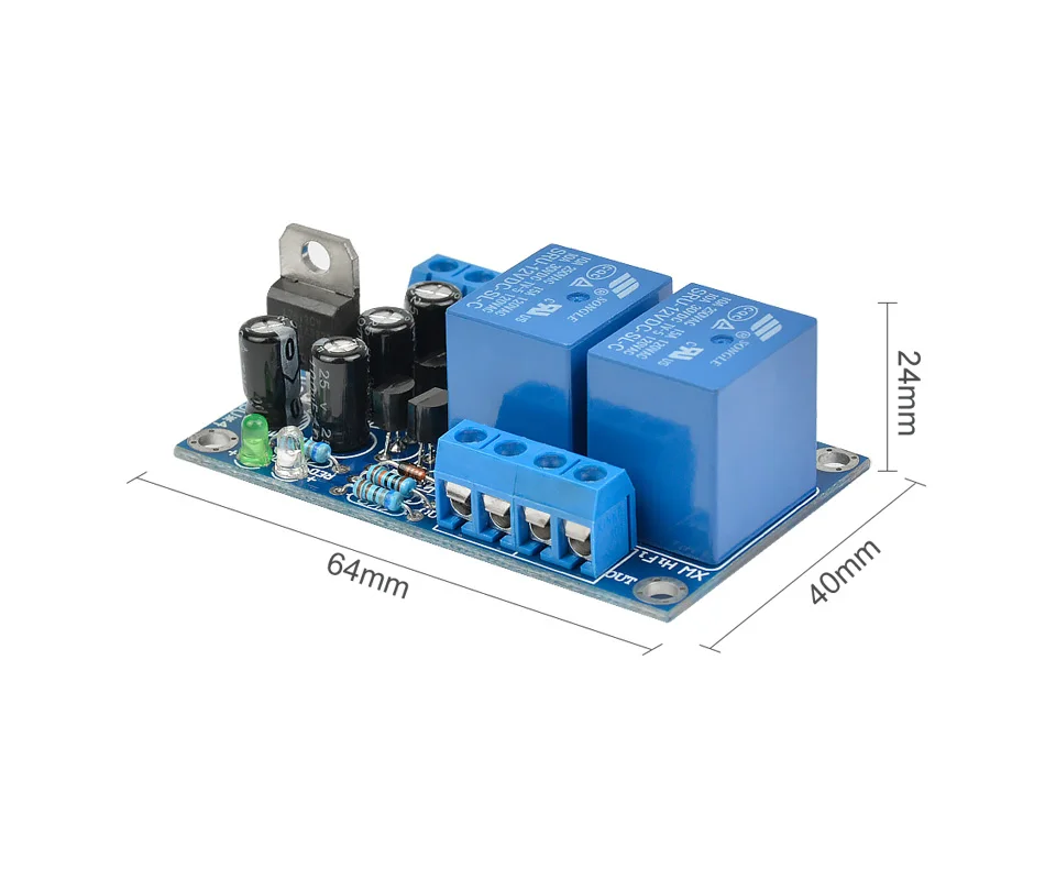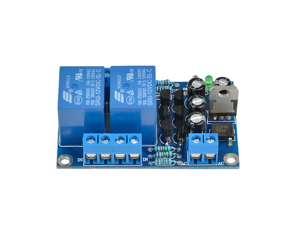 The board circuit is simple, easy to manufacture, safe and reliable. It has LED status display. When detecting: the red light is on. When working normally: the red light is off and the green light is on. High current relay is suitable for most power amplifier boards.