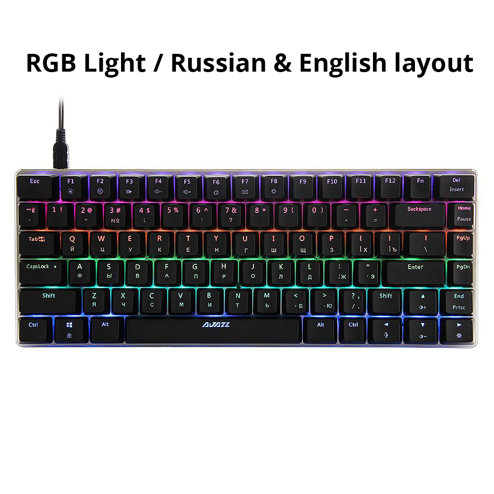 Ajazz AK33 82 keys mechanical keyboard wired Russian/English RGB backlight / 1 color backlit gaming keyboard
