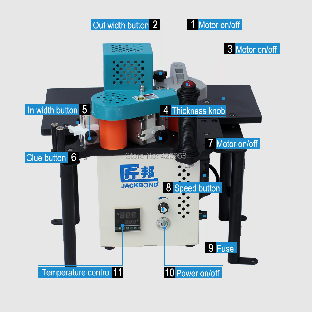 JBT90 with speed control.If the machine only use for the curve and straight wood,we suggest the model JBT90.And,if curve&straight MDF board,we also suggest the model JBT90,other board,we suggest JBT102B double glue cover.