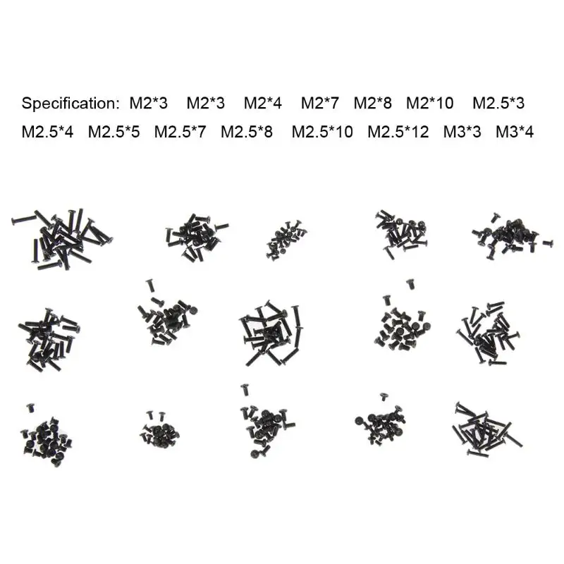 2.quantity:300pcs 3.Package include following size Laptop screw 20pcs of each. 4.Size show : M2*3 M2*3 M2*4 M2*7 M2*8 M2*10 M2.5*3 M2.5*4 M2.5*5 M2.5*7 M2.5*8 M2.5*10 M2.5*12 M3*3 M3*4 1 x 300pcs screws set