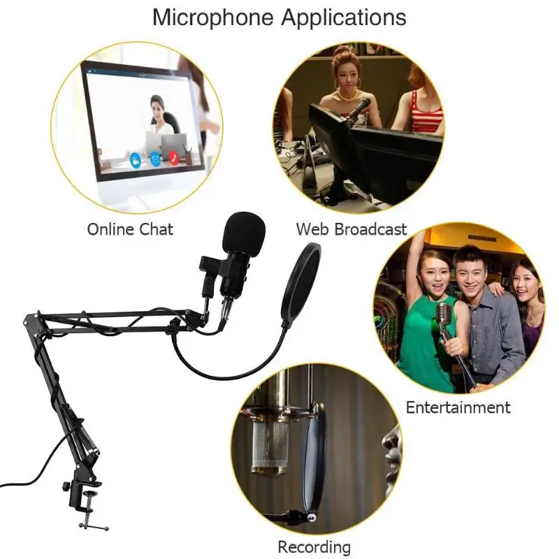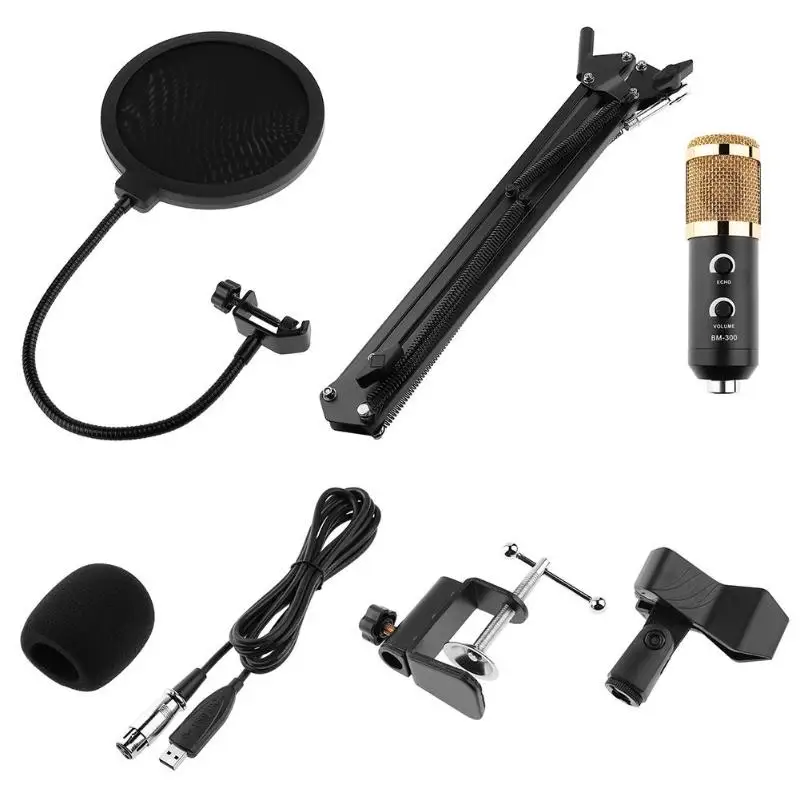 BM-300 USB Wired Condenser Microphone Studio Karaoke Noise Reduction Mic for Computer Video Recording