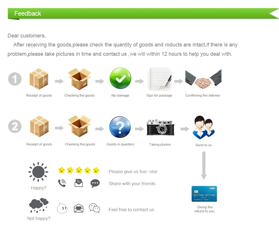 • If you did not receive the product within the guaranteed time( 45 days not including 2-5 day processing) you can request a refund or a reshipment.