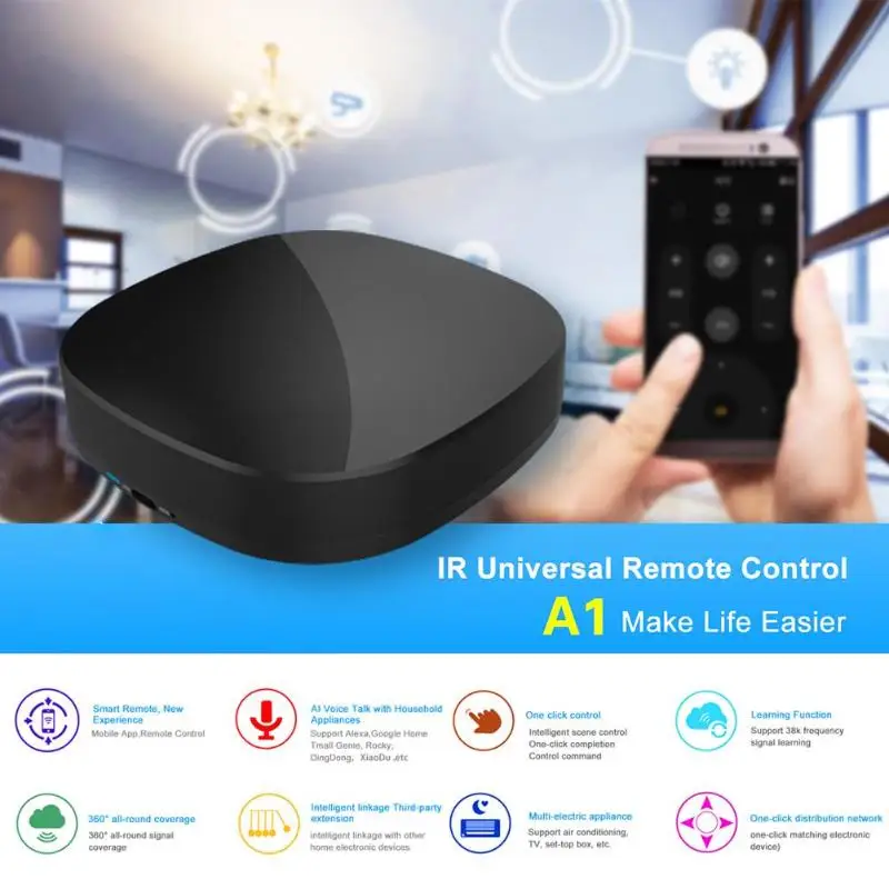ALLOYSEED Universal Intelligent WiFi IR Switch Smart Home Wireless Remote Control Wi-Fi Smart Controller For TV Set Top Box A/C