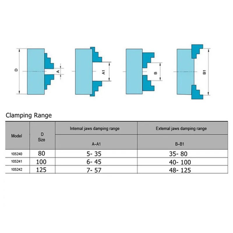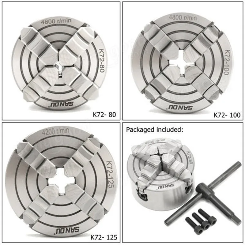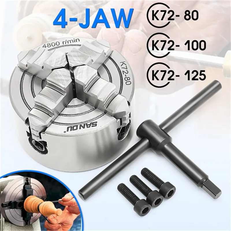 K72 Lathe Chuck 80/100/125mm 4 Jaw Independent Hardened Reversible Tool