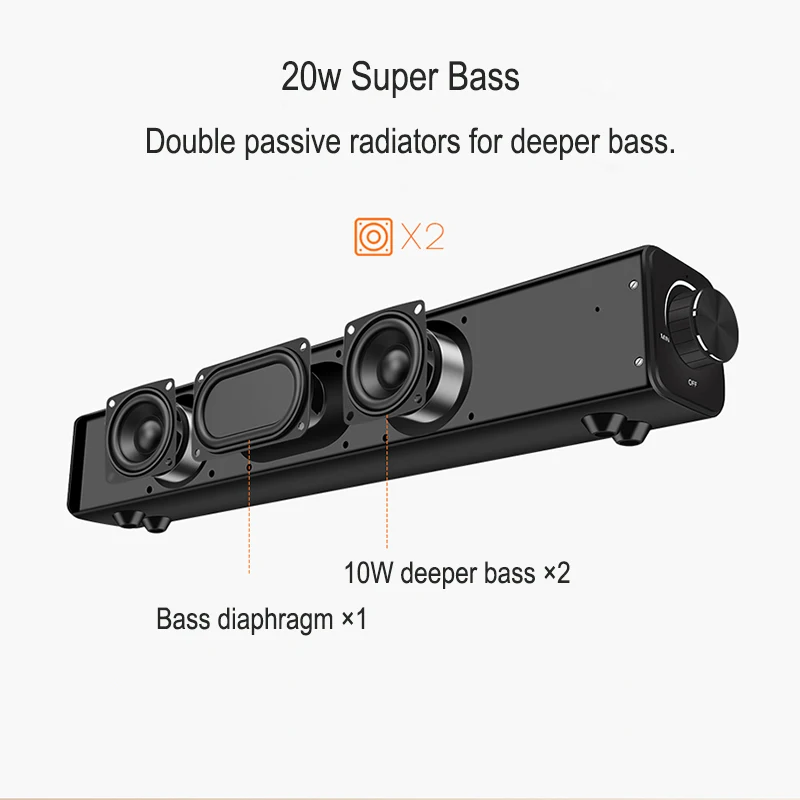 Allvcover 20W Bluetooth Speaker with BassUp Technology HIFI Subwoofer Stereo Dual 10W Drivers Speaker Wireless Soundbar Speaker