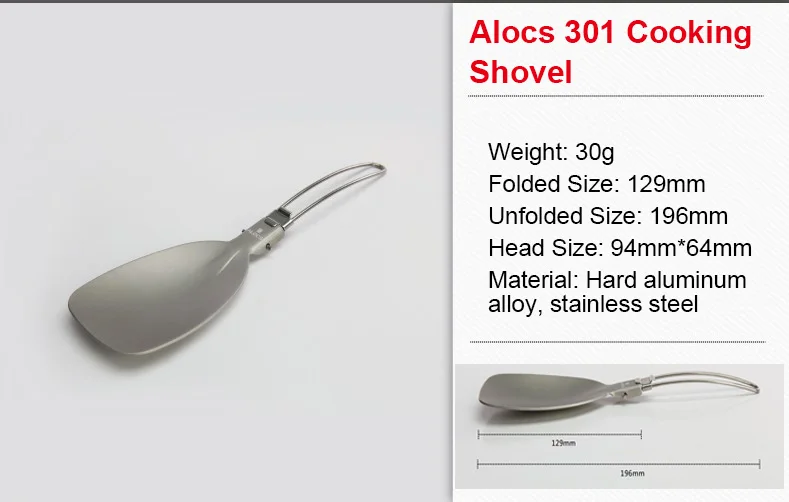 Alocs 301 Outdoor Ultralight Cooking Shovels Foldable Stainless Steel Camping Shovel Cookware Spatula for Picnic Camping Hiking