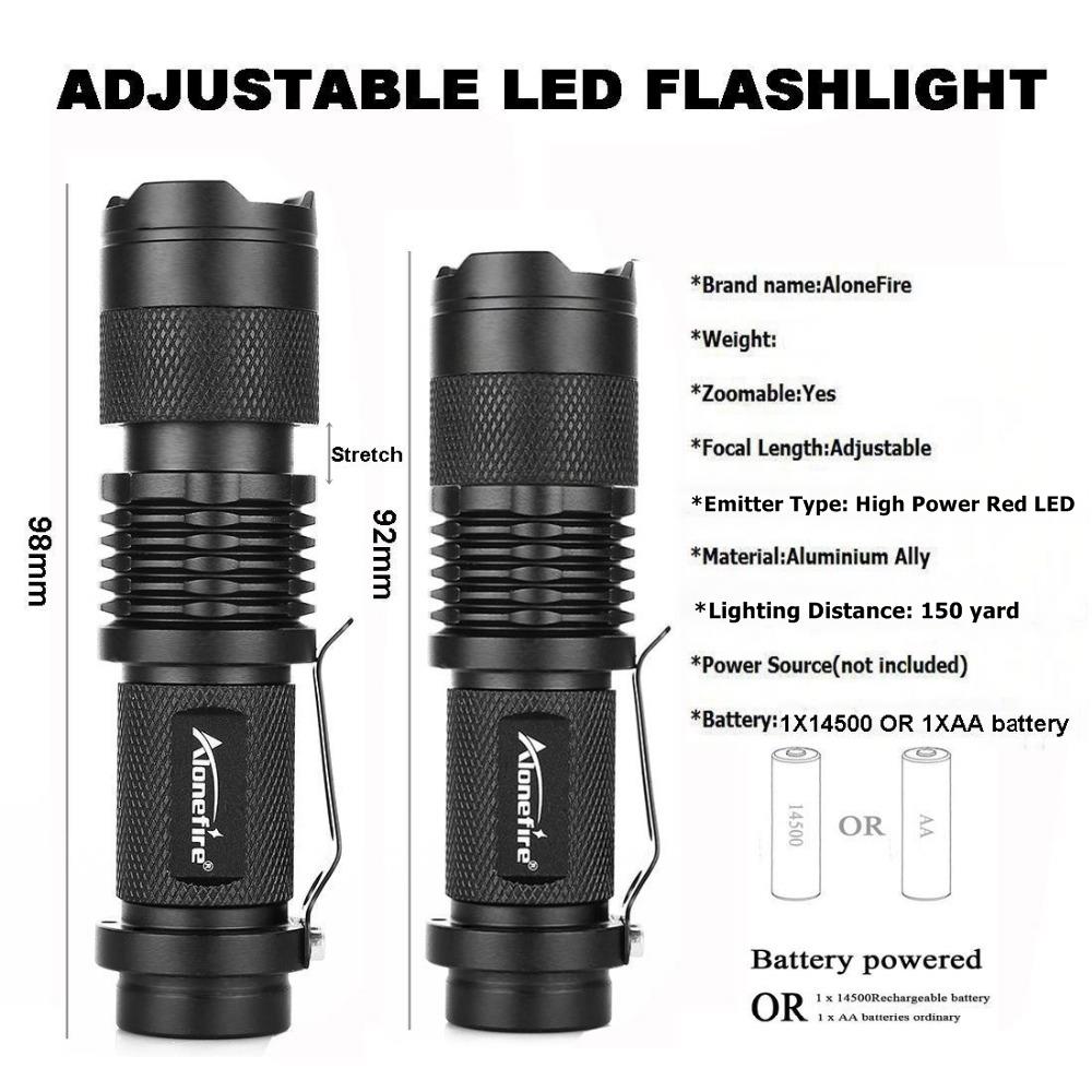 One Mode Red LED Flashlight, Mini Zoomable Scalable High Power LED 1 Mode 200 Lumen 150 Yard Long Range Red Light Flashlight Red Hunting Light Red Light Torch For Hunting, Astronomy, Night Vision Red LED