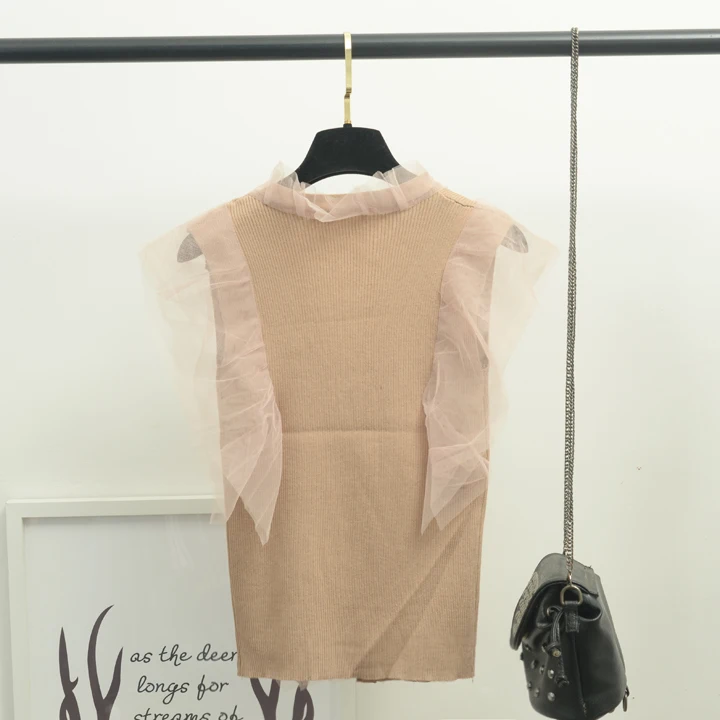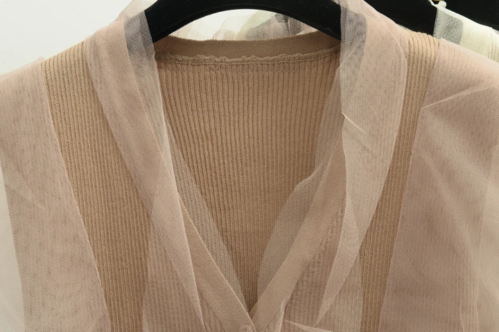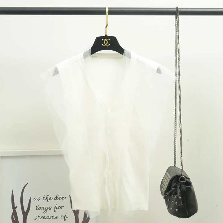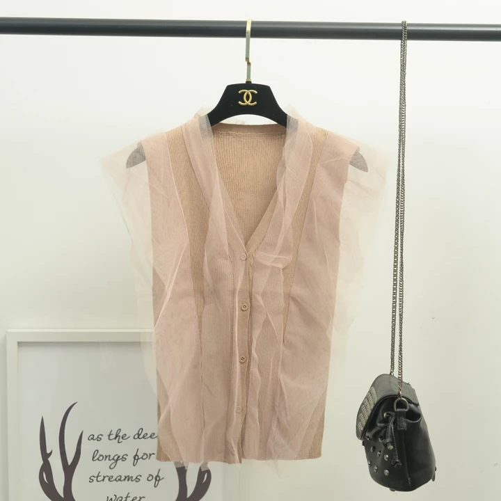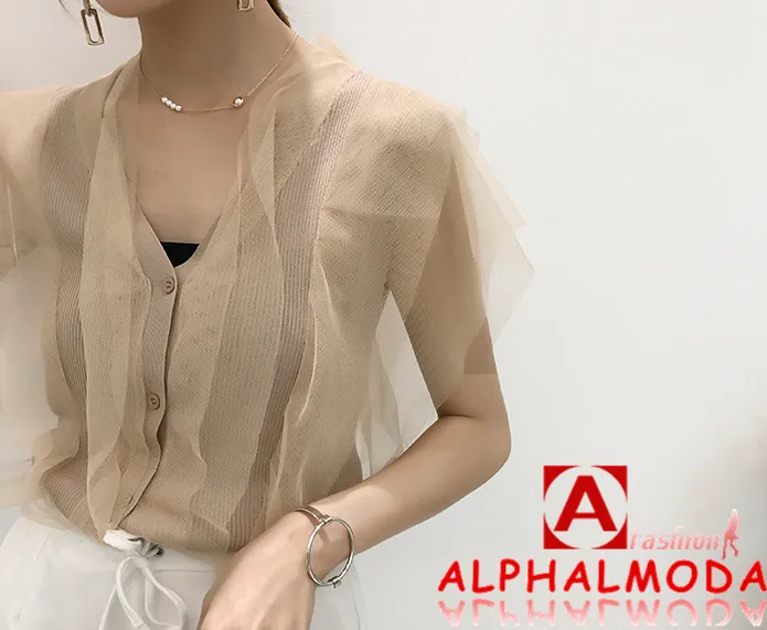 [Alphalmoda] 2017 Summer Korean Fashion Gauze Patchwork V Collar Women’s Graceful Sleeveless Sweater Cardigans Single Breasted