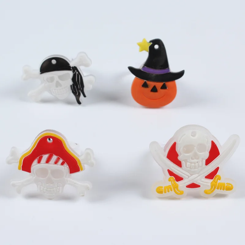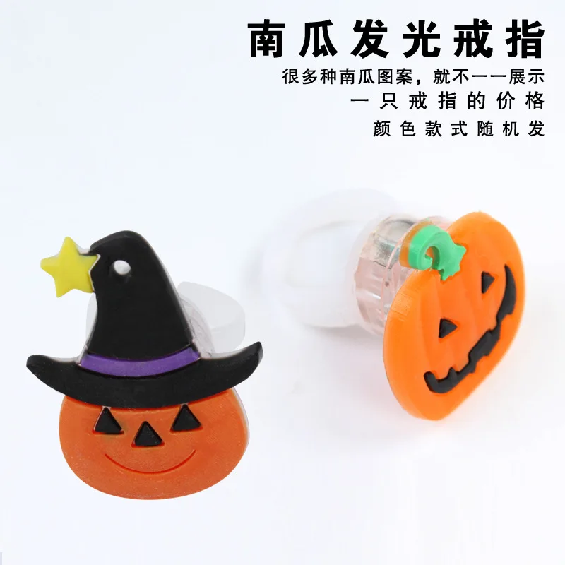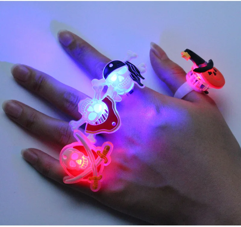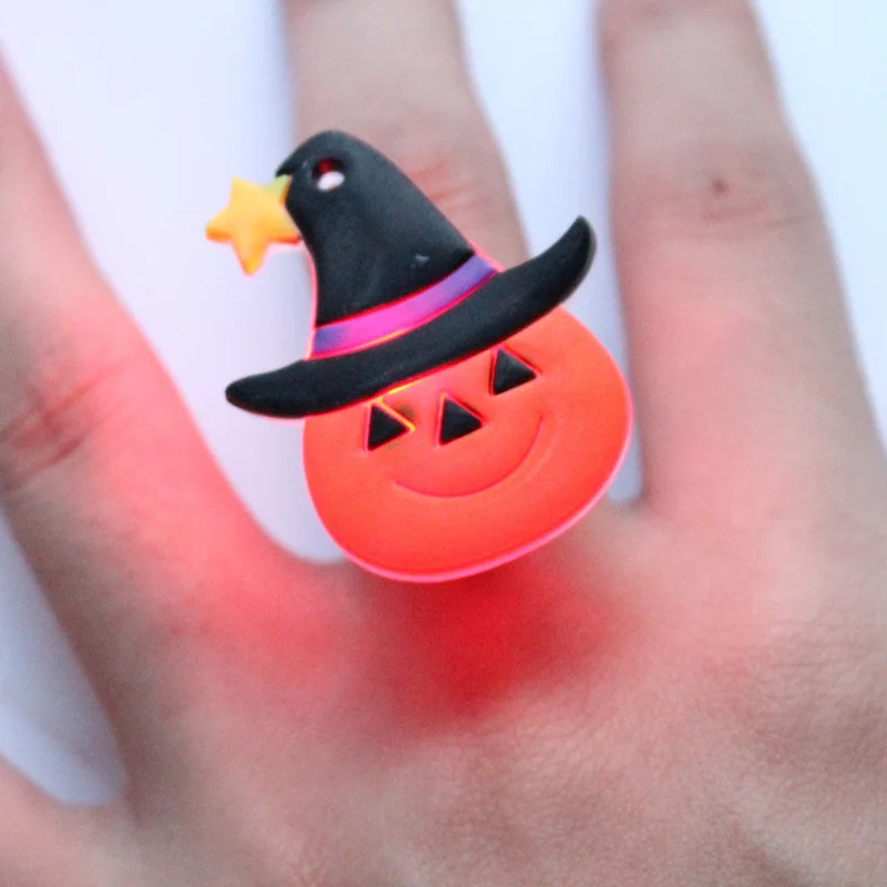 Amawill 5 Pcs Cartoon Halloween Glowing Plastic Ring Skull Pumpkin Luminous Toys Birthday Party Decorations for Kids 8D