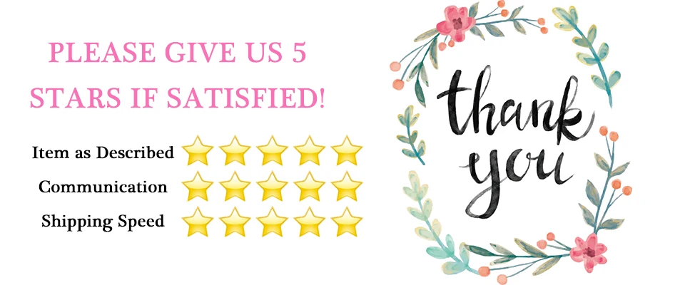 1. If you are satisfied with our product and service, please give us a positive feedback with 5 star review which is very important for us. We will be very appreciate if you can leave your real feeling here.