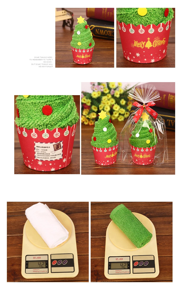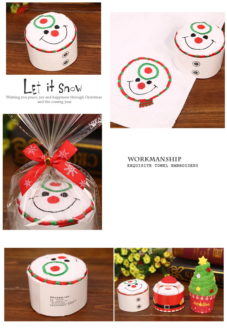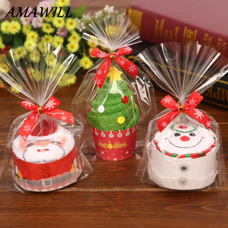AMAWILL Creative Cake Shape Towel Cute Cartoon Santa Claus Snowman Christmas Tree Pattern New Year Practical Christmas Gifts 7D