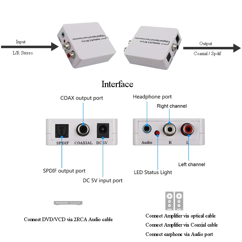 - Easily Convert Analog Stereo Audio (Red and White) Jacks to Toslink optical or Coaxial SPDIF Digital Audio