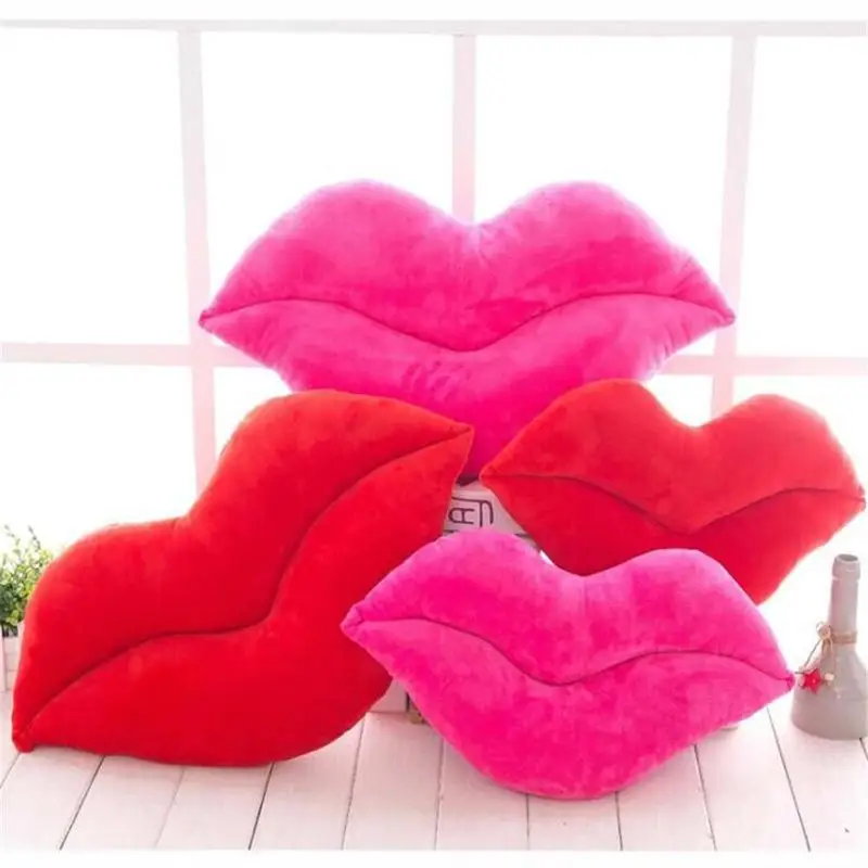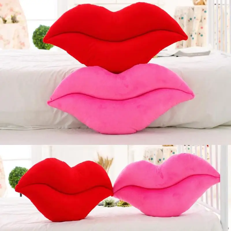 ANCRV 2 Colors Soft Rose Red Lips Shape Plush Stuffed Throw Pillow Waist Cushion Bolster Gift VQT8120