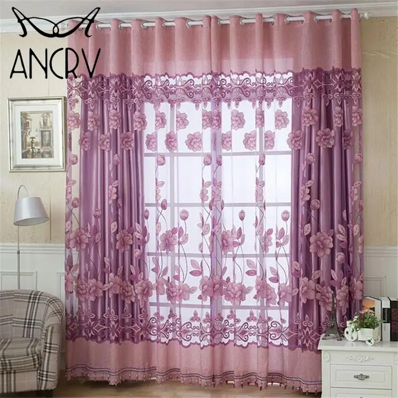 ANCRV Rainbow Colors Solid Sheer Panels Door Window Curtains Drapes Voile Curtain For Home Decor Living Room Bedroom Kitchen
