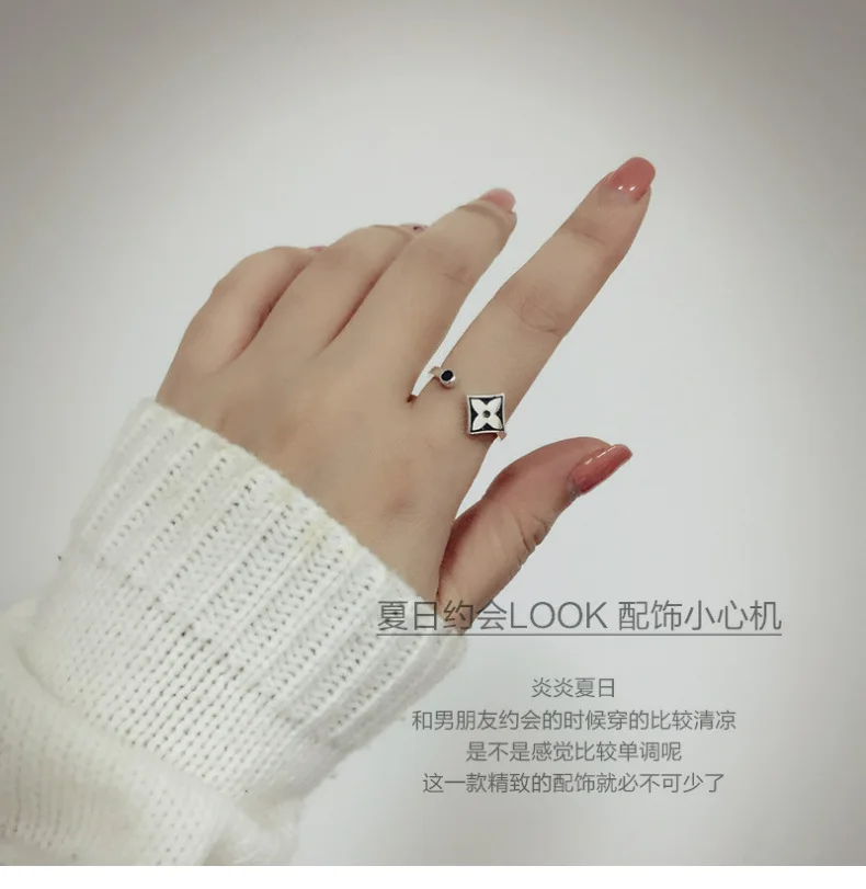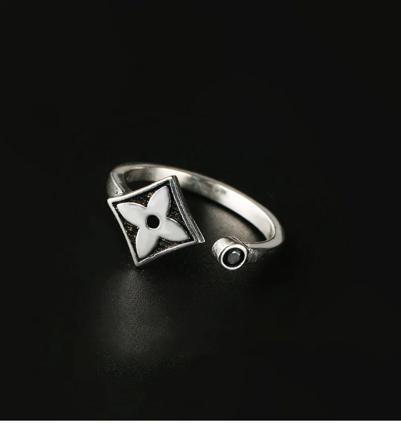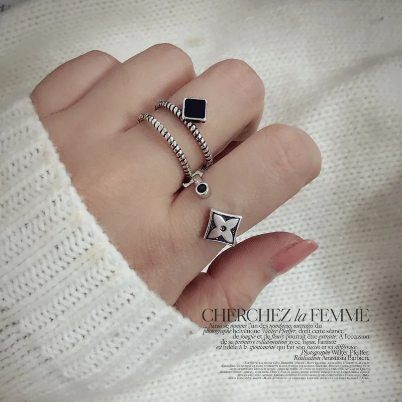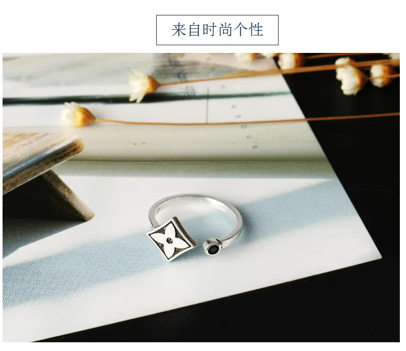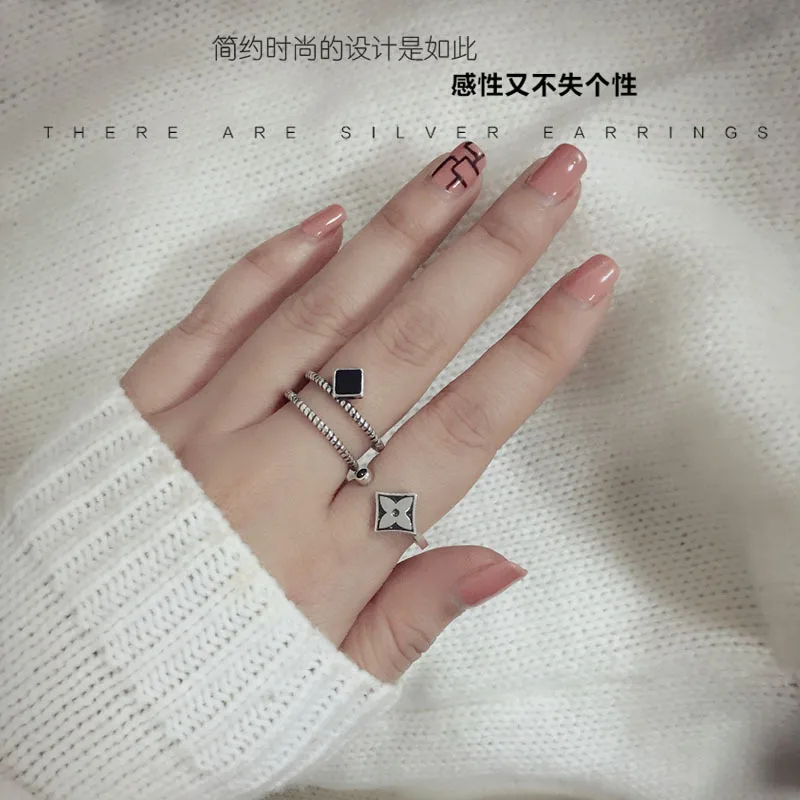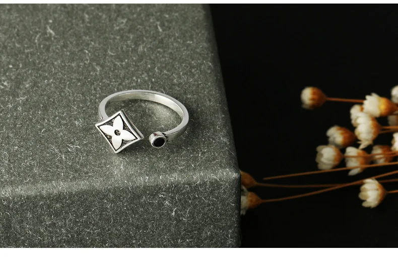 Anenjery Brand Korean Vintage Fashion Thai Silver Leaf Clover Hipster Ring For Women 925 Sterling Silver Opening Rings S-R350