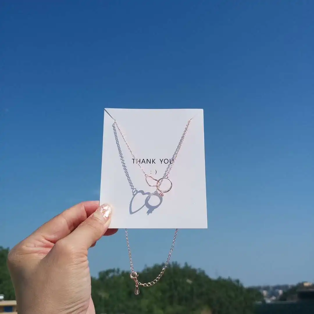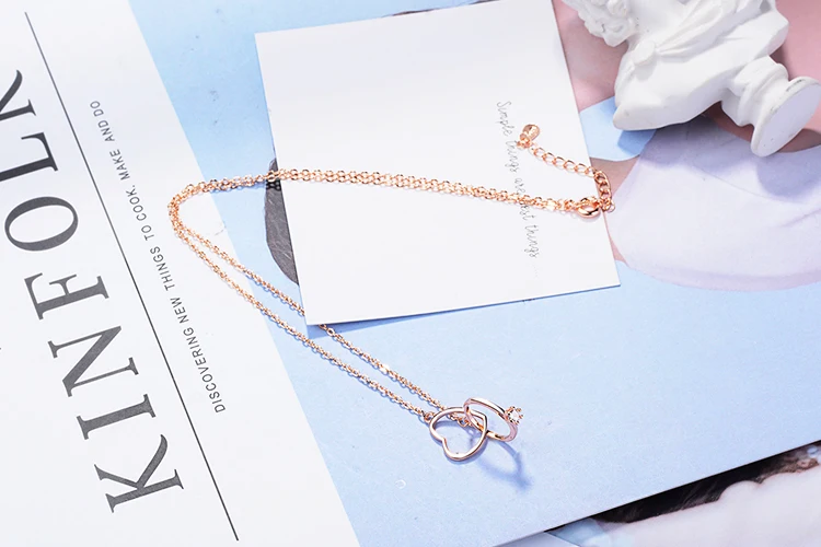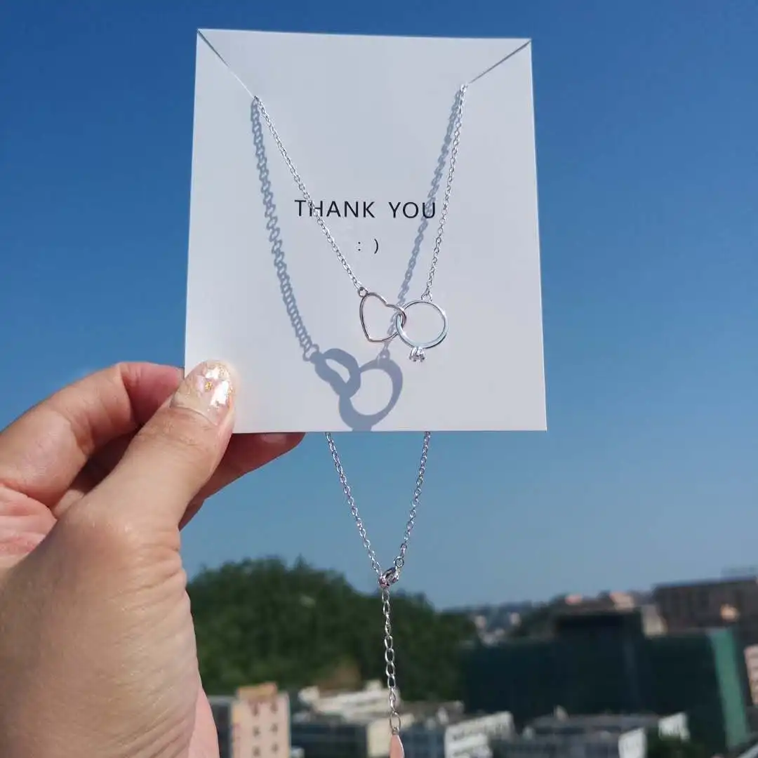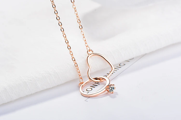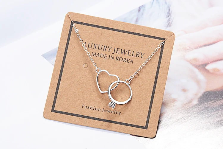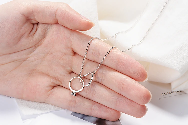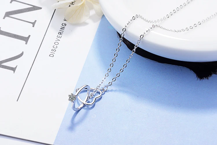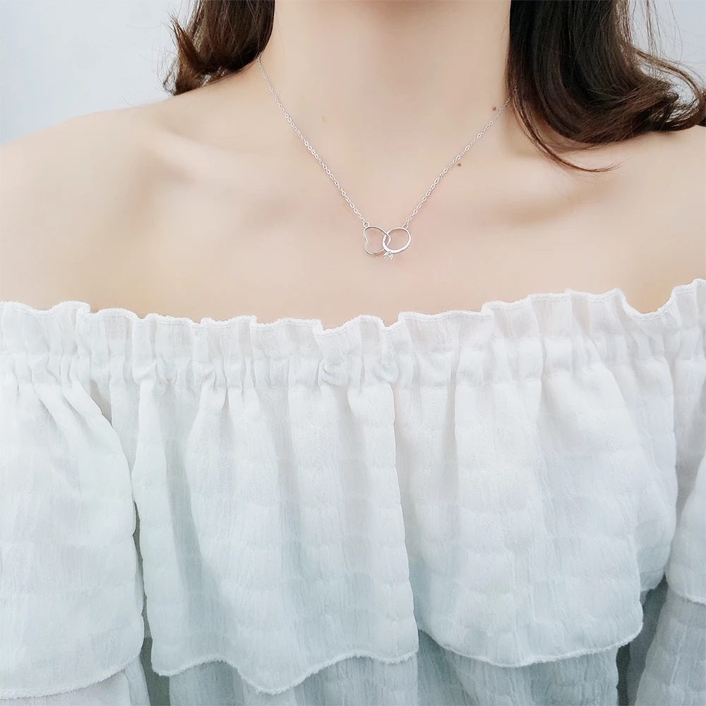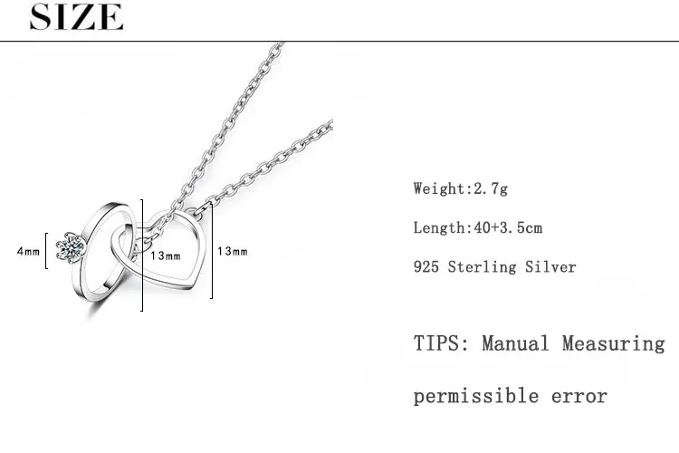 Anenjery Charming 925 Sterling Silver Double Circle Heart Zircon Necklace For Women Girl Valentine’s Day Present S-N261