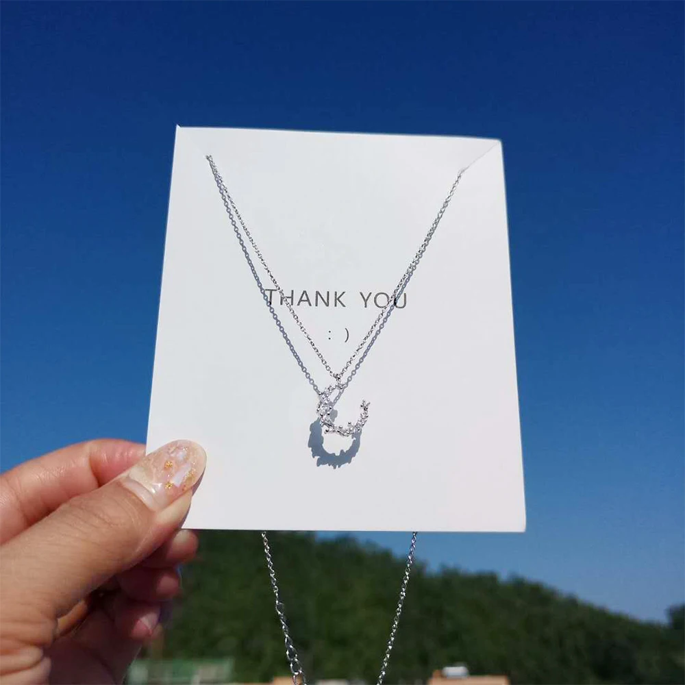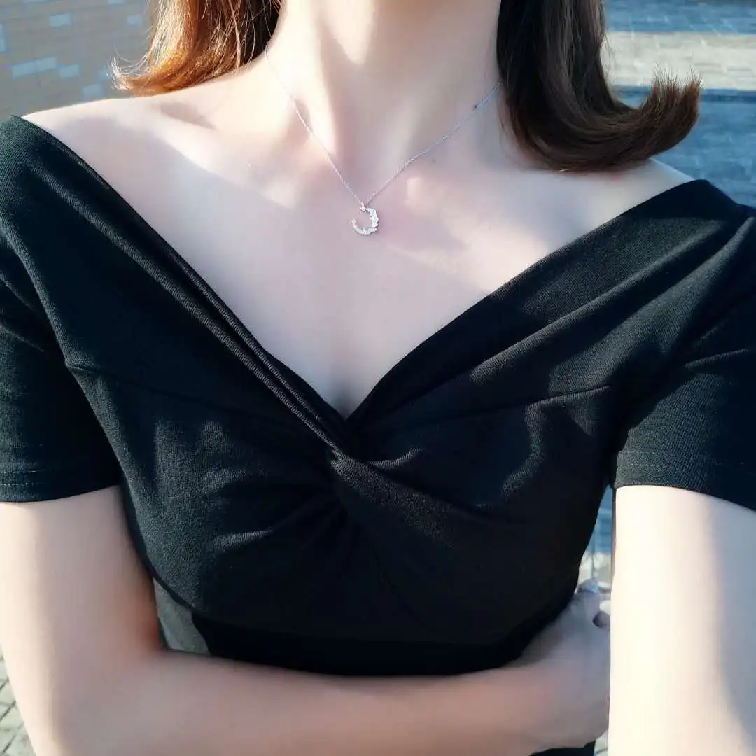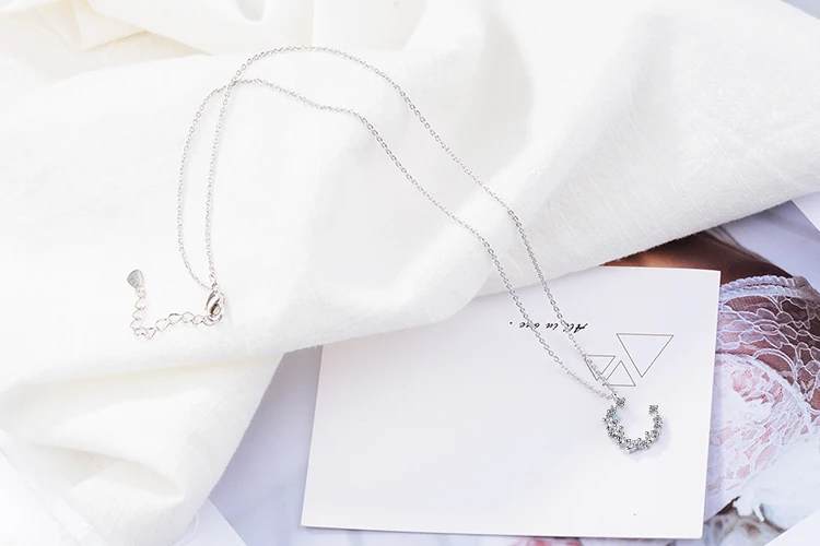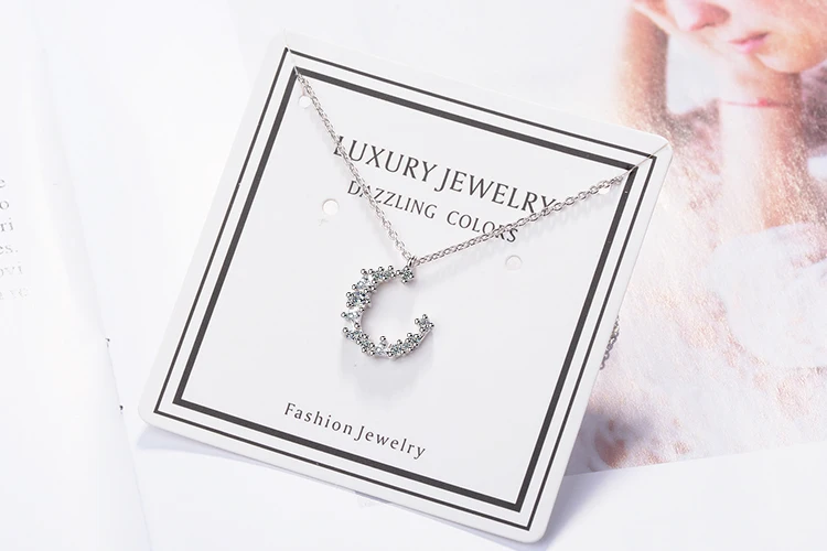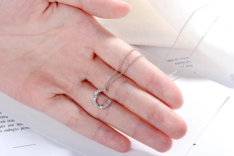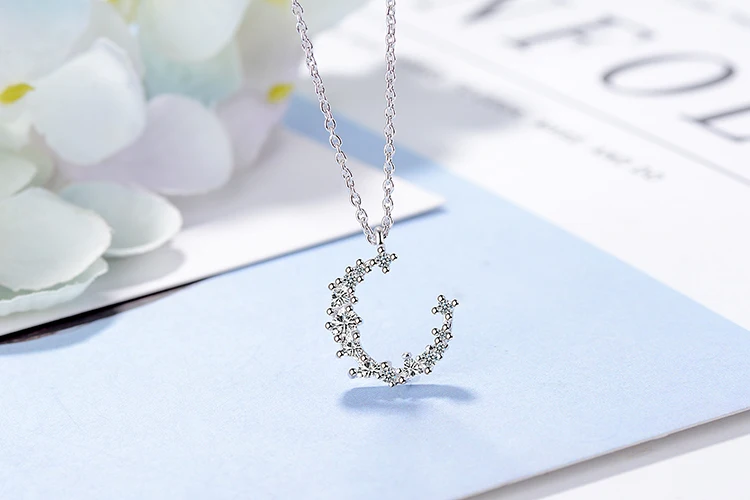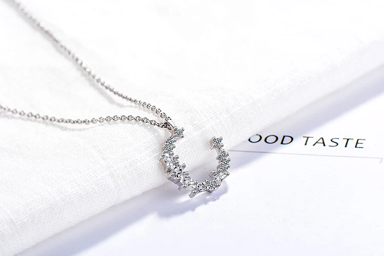 Anenjery Hot Fashion Dazzling CZ Irregular Crescent Moon Pendant Necklace For Women 925 Sterling Silver Zircon Necklace S-N277