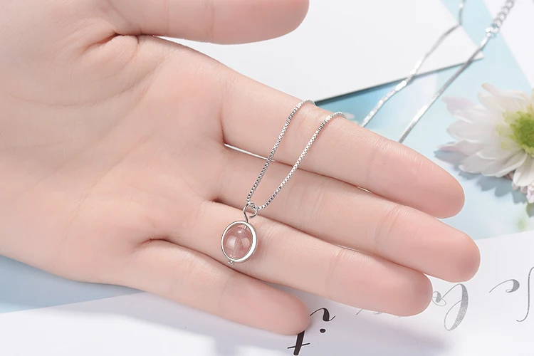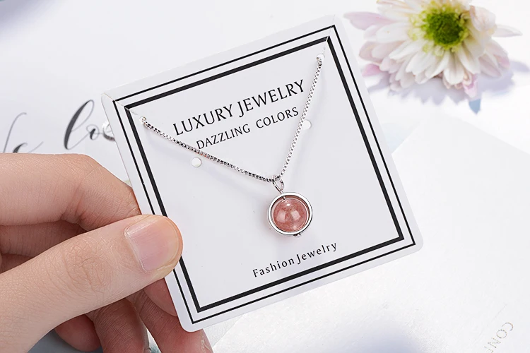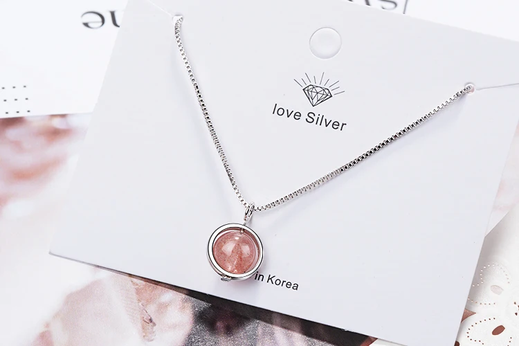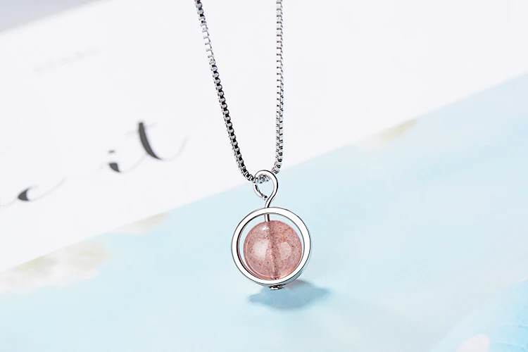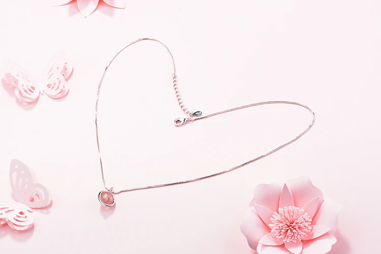 Anenjery Hot Sale 925 Sterling Silver Natural Strawberry Crystal Beads Necklace For Women Simple Jewelry collares S-N249