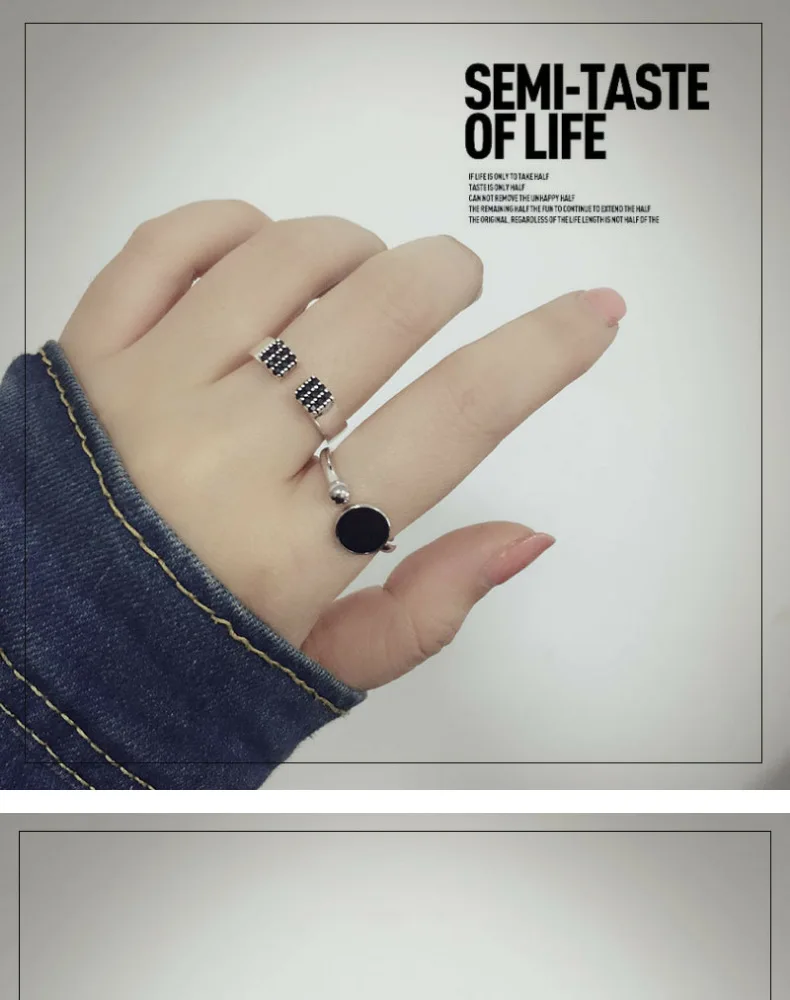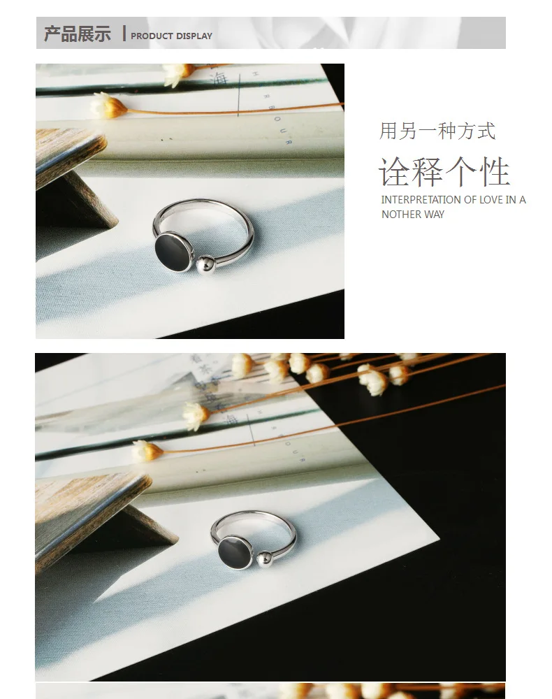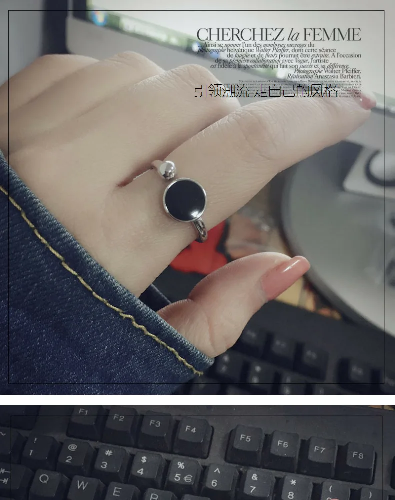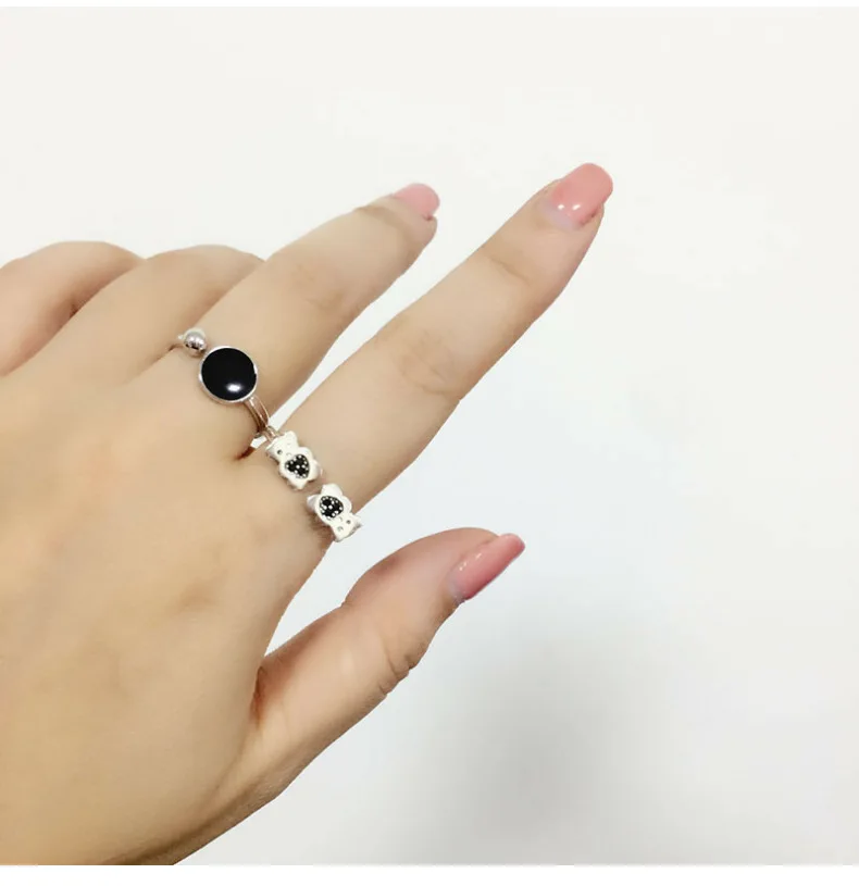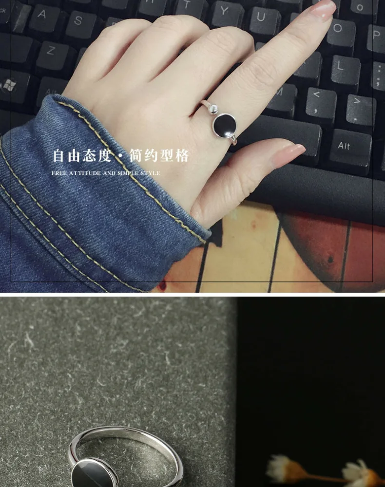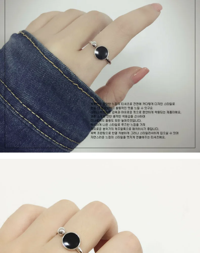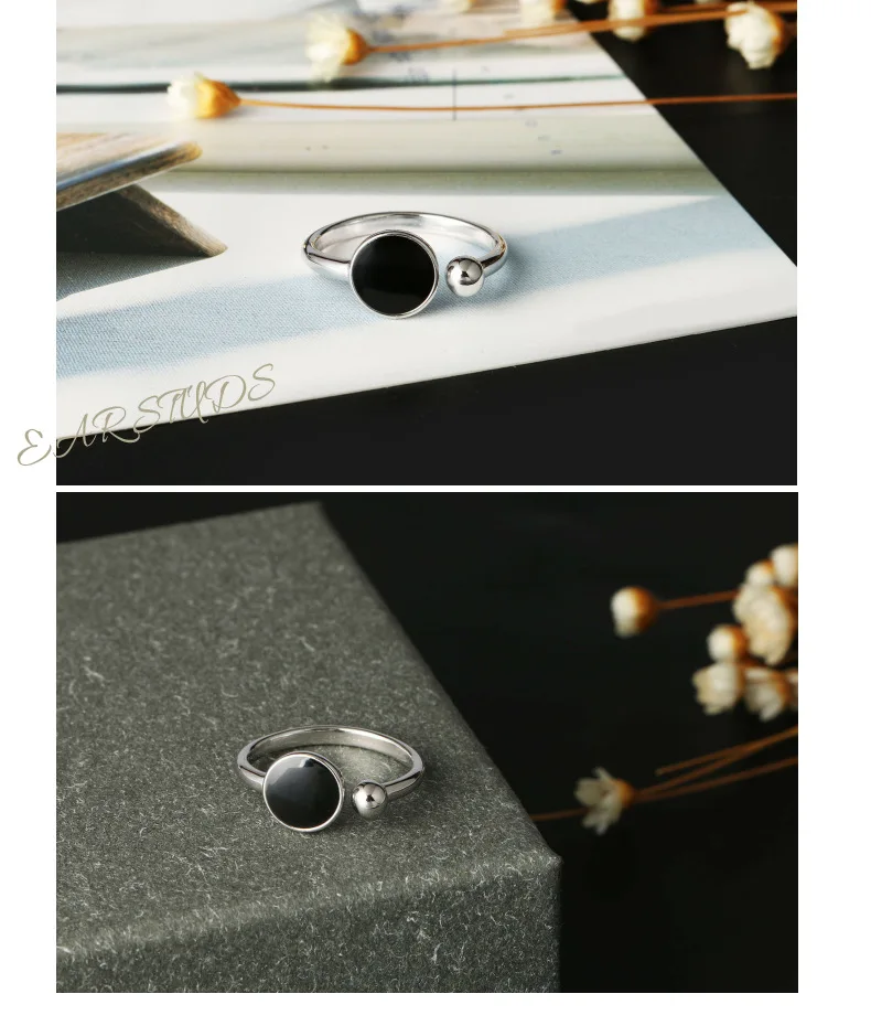 Anenjery Korean Fashion Personality Simple Geometric Hipster Ring For Women 925 Sterling Silver Round Epoxy Opening Rings S-R349