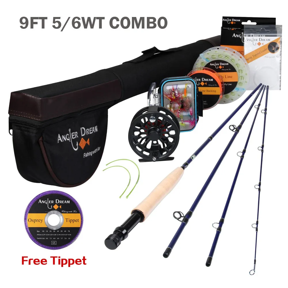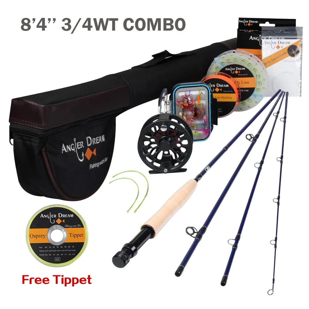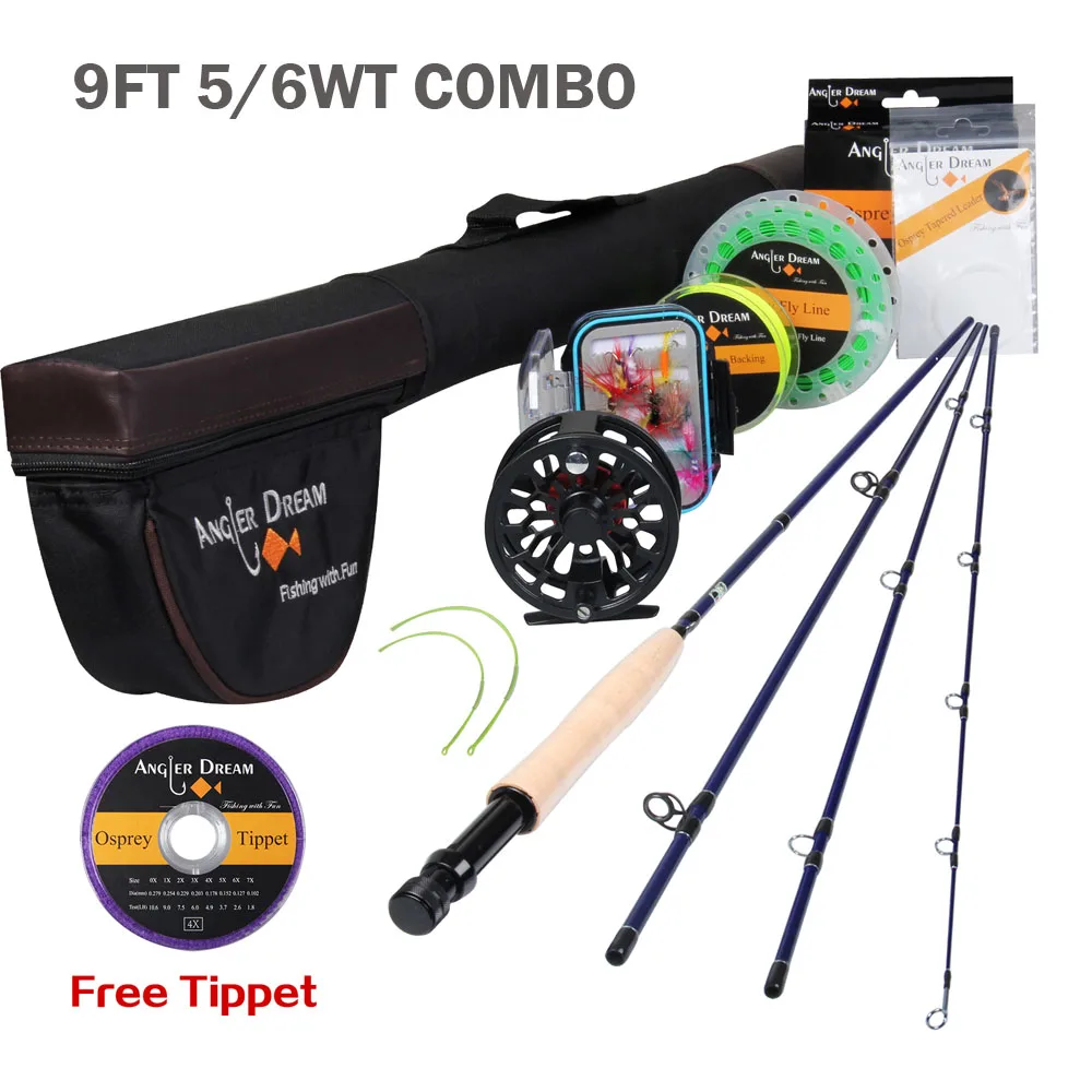 Angler Dream Fly Fishing Rod And Reel Combo Set 3/4 5/6 WT Rod Combo With Fly Line Fly Lures Full Kit With Bag