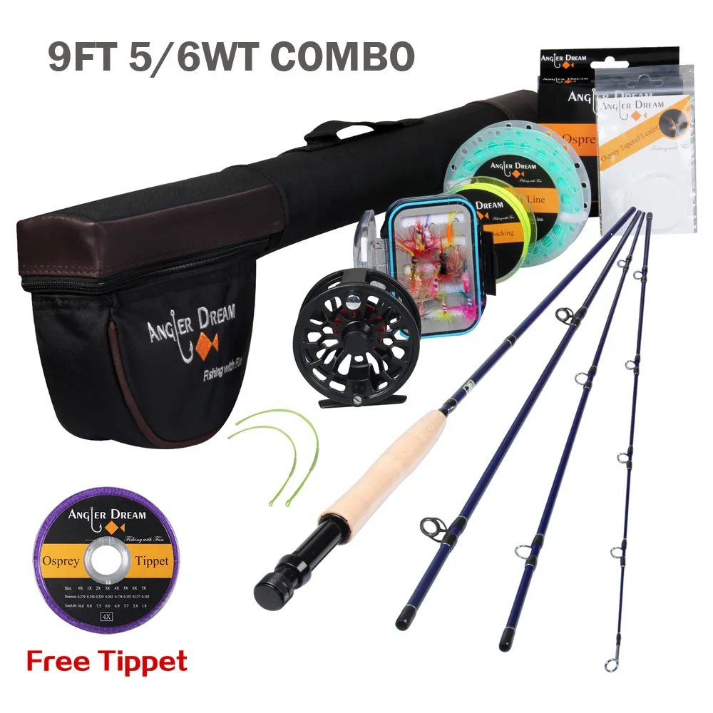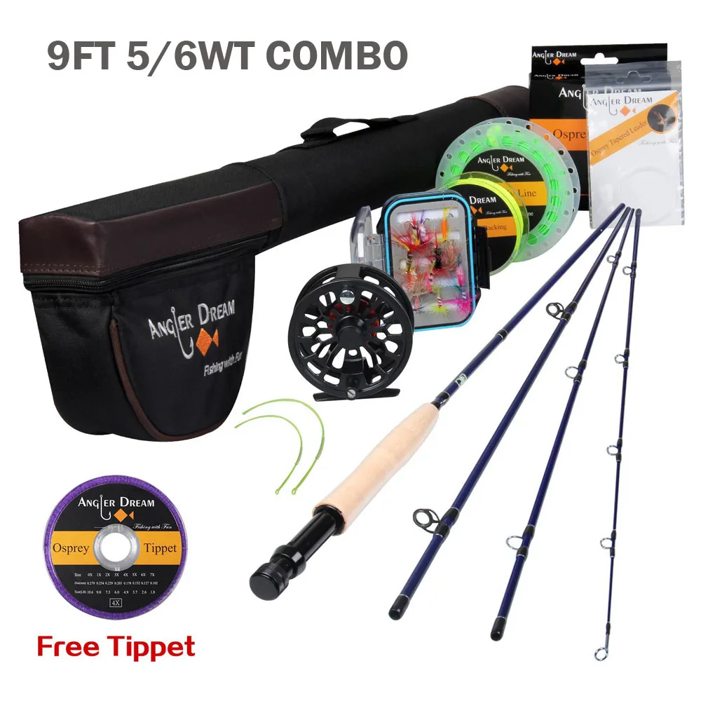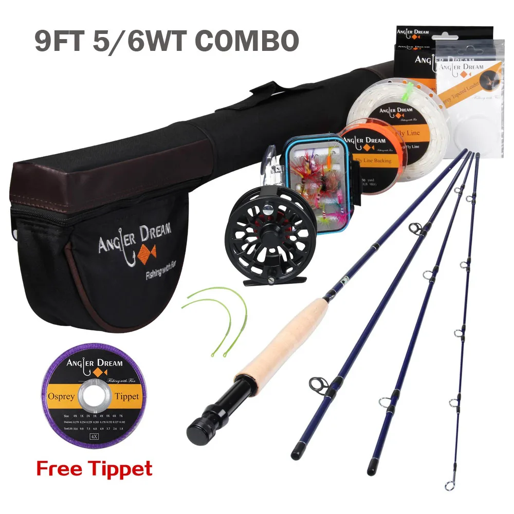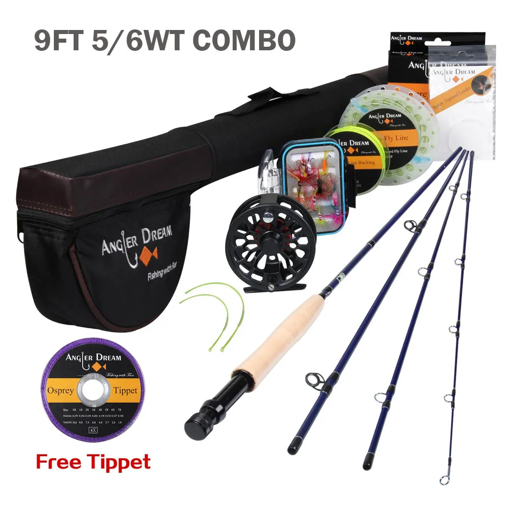 Angler Dream Fly Fishing Rod And Reel Combo Set 3/4 5/6 WT Rod Combo With Fly Line Fly Lures Full Kit With Bag