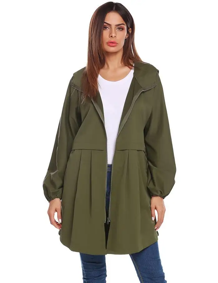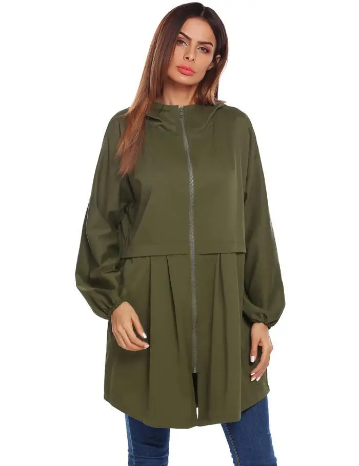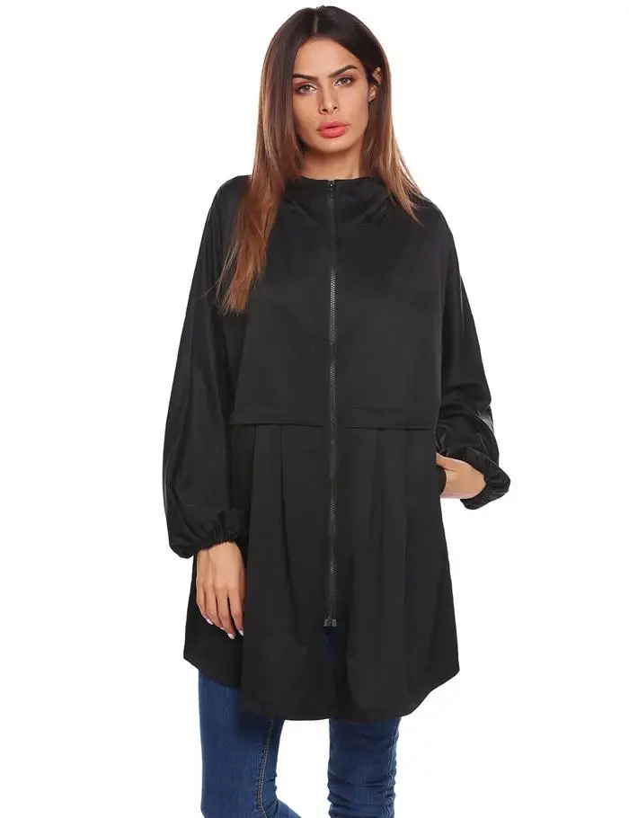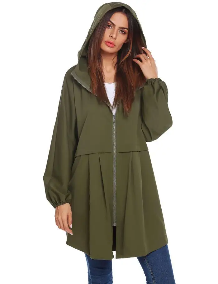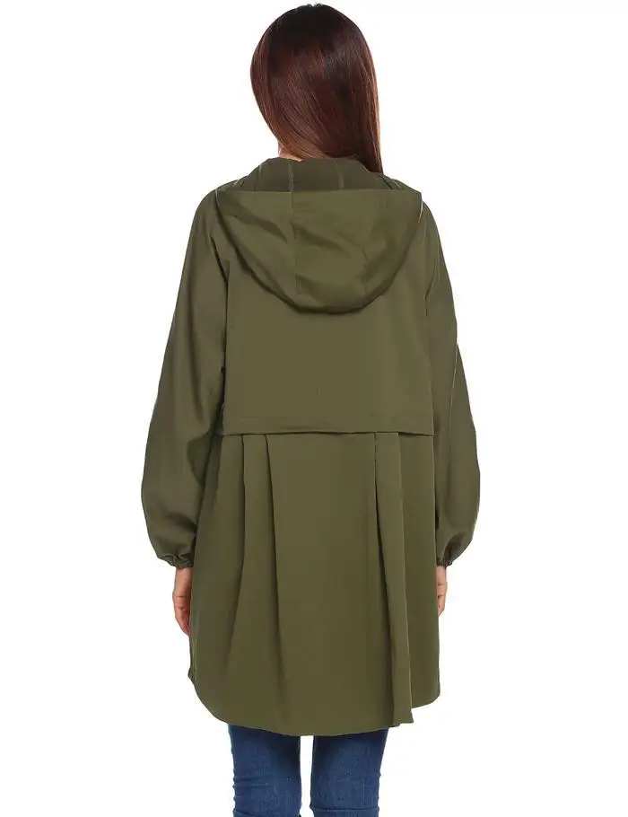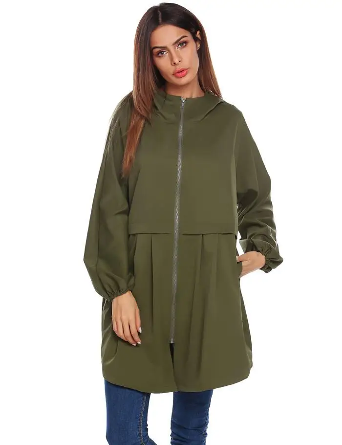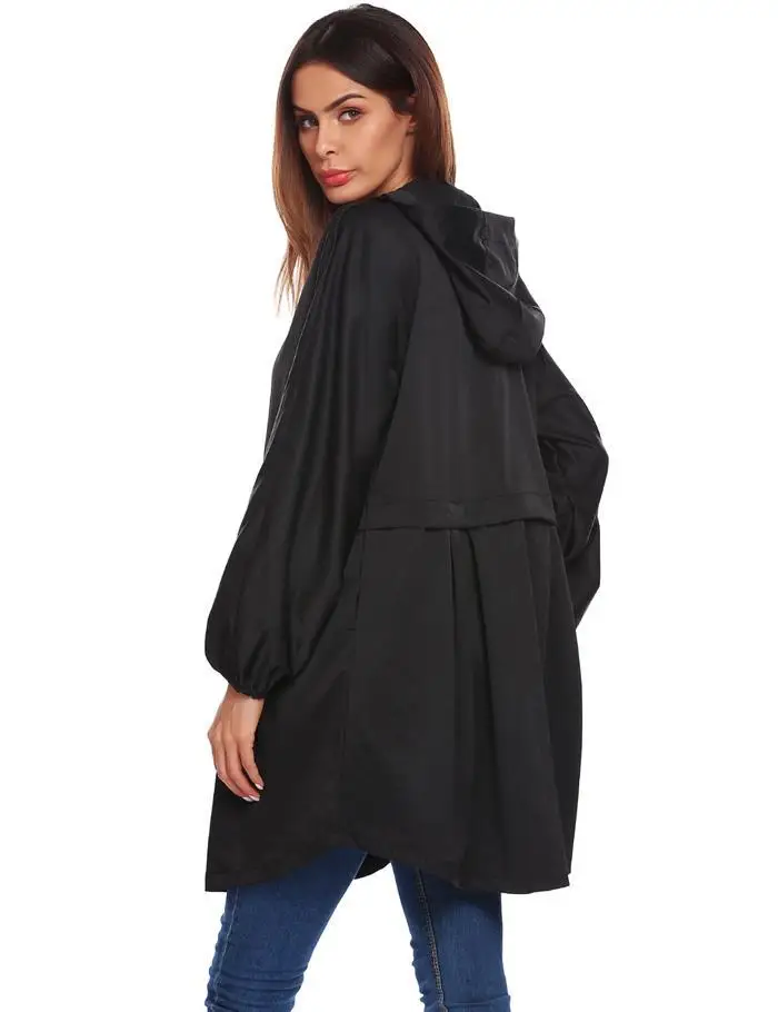 ANGVNS Women Coat Autumn Hooded Rain Jacke Lightweight Waterproof Long Sleeve Raincoat Women OutWears Solid Color Ladies Coats