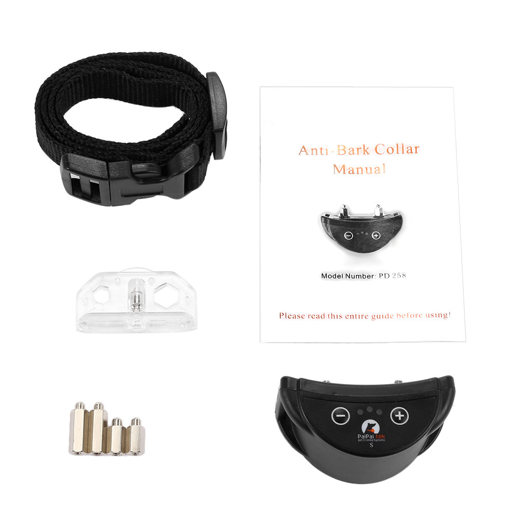 Package Contents: 1 x Anti-bark Receiver, 1 x Adjustable Nylon Collar, 1 x Test Light, 2 x Long Shock Electrode, 2 x Short Shock Electrode, 1 x English User Manual