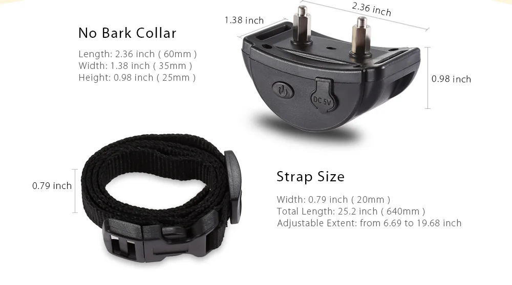 Package Contents: 1 x Anti-bark Receiver, 1 x Adjustable Nylon Collar, 1 x Test Light, 2 x Long Shock Electrode, 2 x Short Shock Electrode, 1 x English User Manual