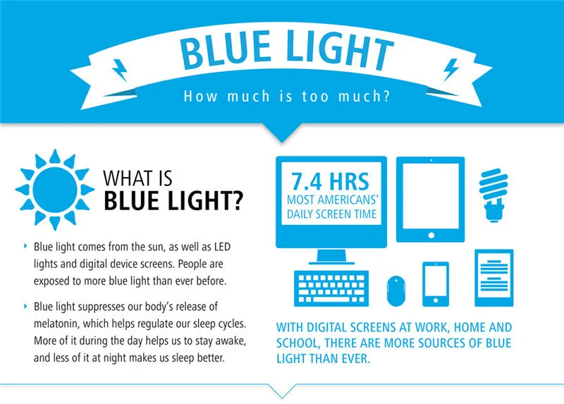 We are in the era of electronics. During the evening you are probably watching something on Netflix, YouTube, TV, catching up on work on a computer or a tablet or just surfing the web. It’s okay, so is every one else. These artificial lights from gadgets emit a blue glow, a light wavelength similar to the day time sky. This blue light enters your eyes and signals your brain to think it is still day time. Taking this signal, your brain then restricts the flow of melatonin through your body.