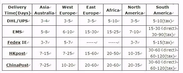 TNT/Fedex/UPS/DHL courier(Recommended): 3-10 working days normally, sometimes it take slower.