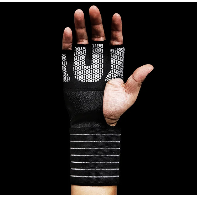 Anti-slip Weightlifting Gloves with Wrist Wraps Sports Fitness Crossfit Bodybuilding Half Finger Gloves