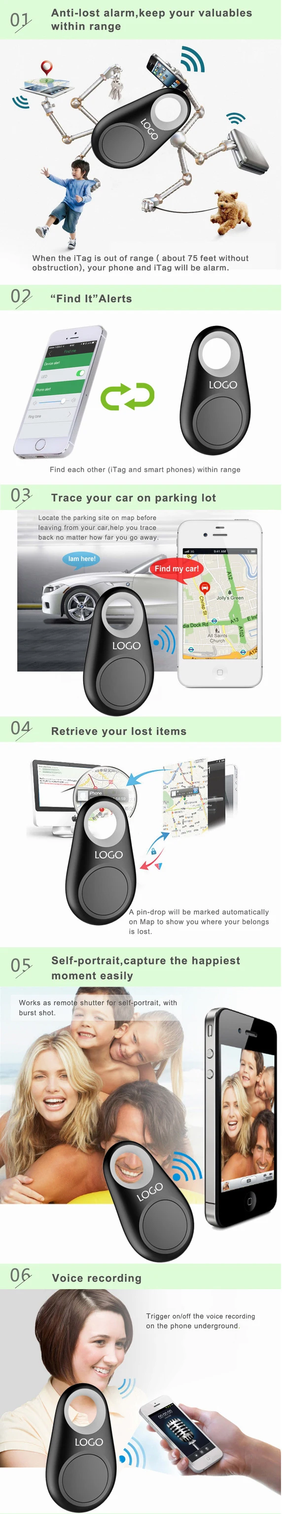• The anti-theft device is based on a low power 4 of the latest technology of Bluetooth products, through the use of “itracing or etracing” APP software, mobile devices and mobile phone etc.