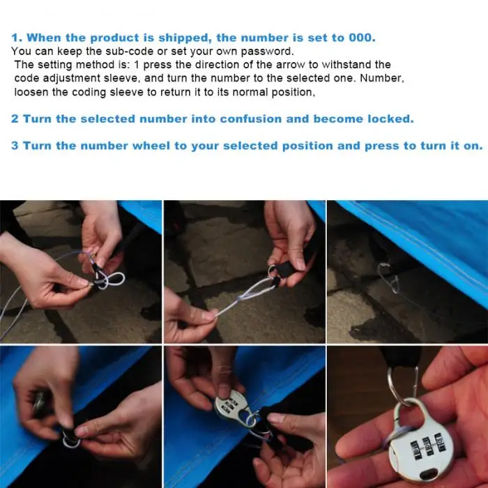 After removing steel wire rope, the password lock can also be used for trolley boxes, work folders, student dormitories, gyms, basket baskets, cosmetic bags, handbags, computer bags.