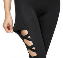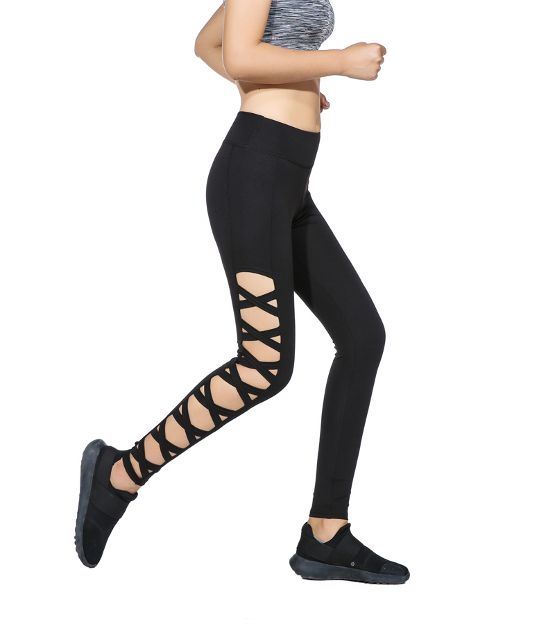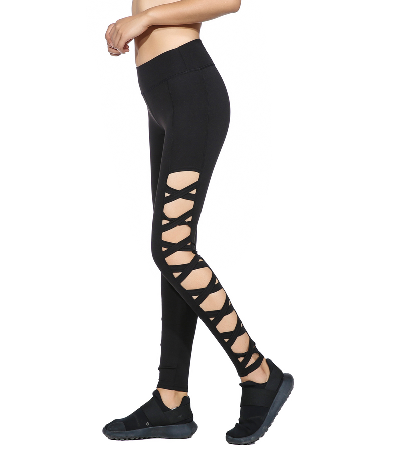 AO SHENG Latest Activewear Cross Women Leggings Black Cut Out Sexy Leggings High Waist Hollow Fitness Legging America Order