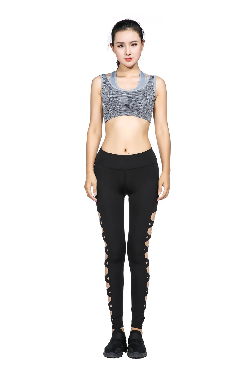 AO SHENG Latest Activewear Cross Women Leggings Black Cut Out Sexy Leggings High Waist Hollow Fitness Legging America Order