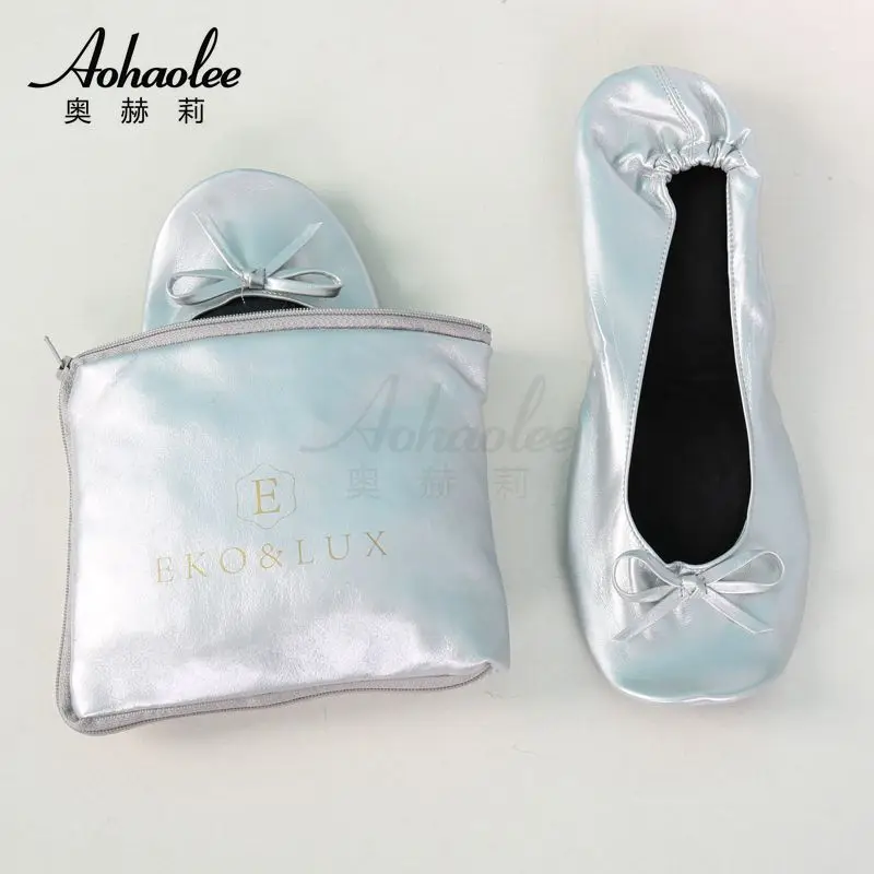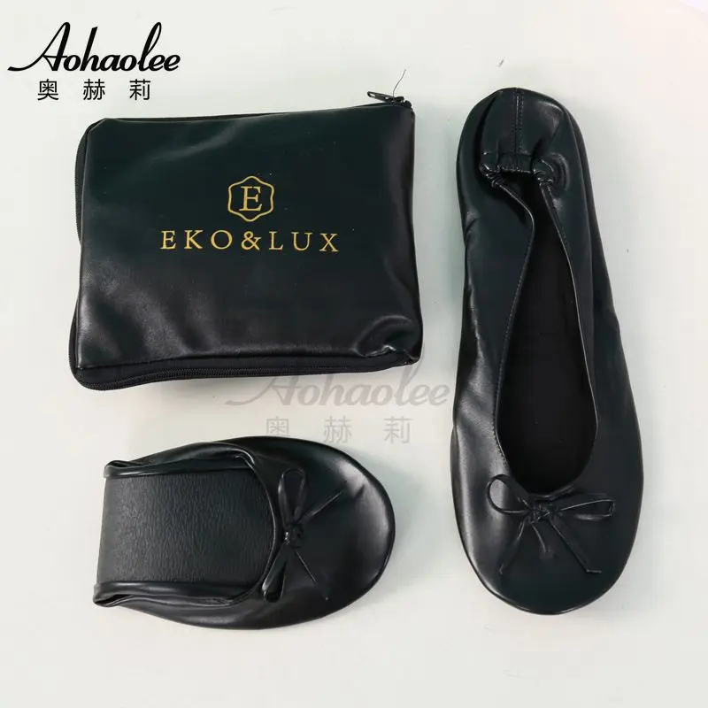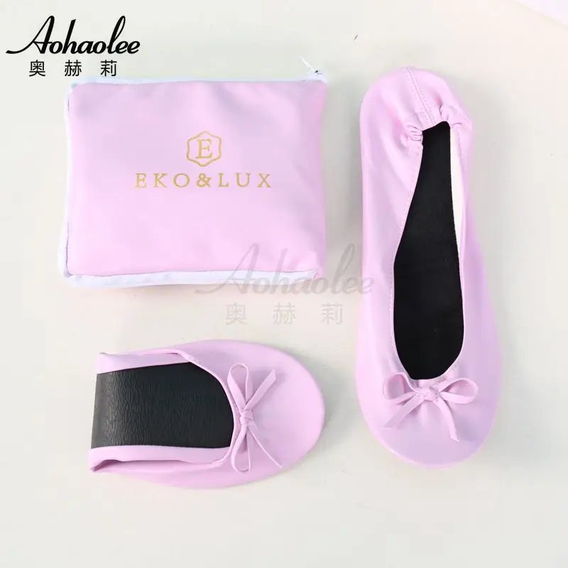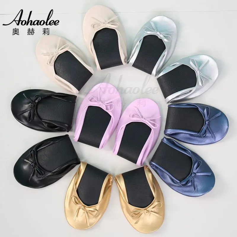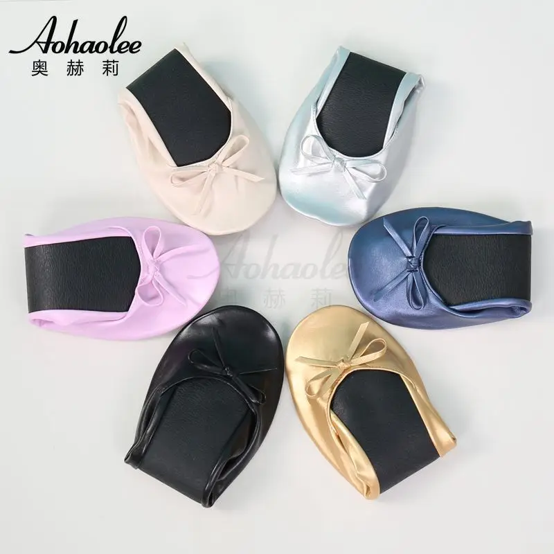 Aohaolee Woman PU Ballerina Fitness Ballet Flats Foldable Shoes Portable Ballet Dancers comfortable Ballroom Women Shoes