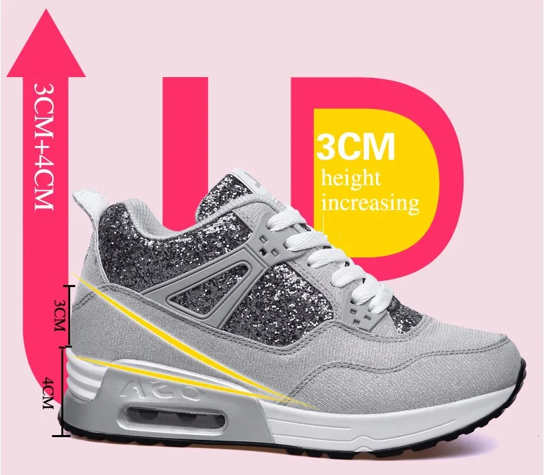AOJILONG Outdoor Walking Shoes Air Cushion Sneakers High Tops Shake Shoes Platform Wedges Height Increasing Sport Tenis Feminino Sapato